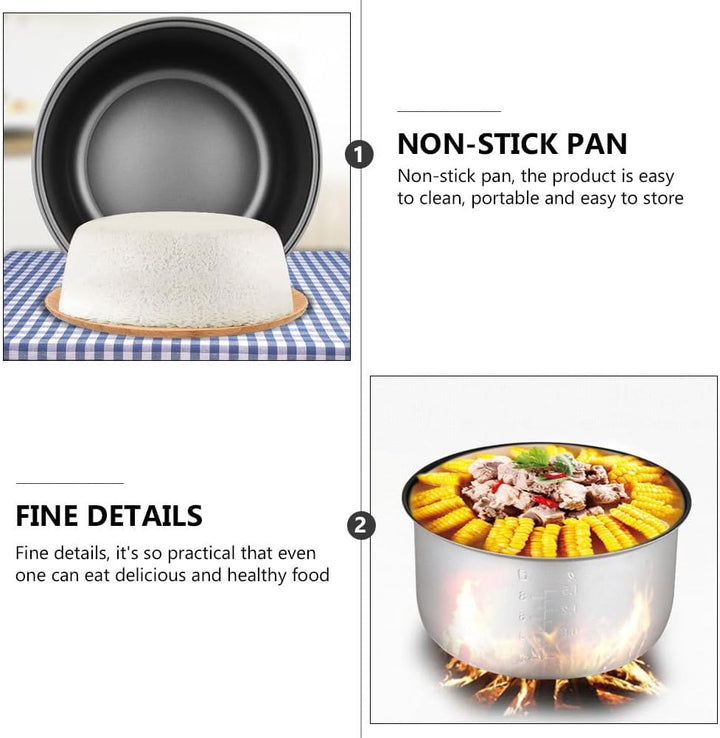 - Die Innenseite des Reiskochereinsatzes mit einem Antihaftüberzug beschichtet, der wirksam verhindert, dass Speisen an der Pfanne haften bleiben, was Lebensmittelverschwendung verhindert und die Reinigung erleichtert.🍲