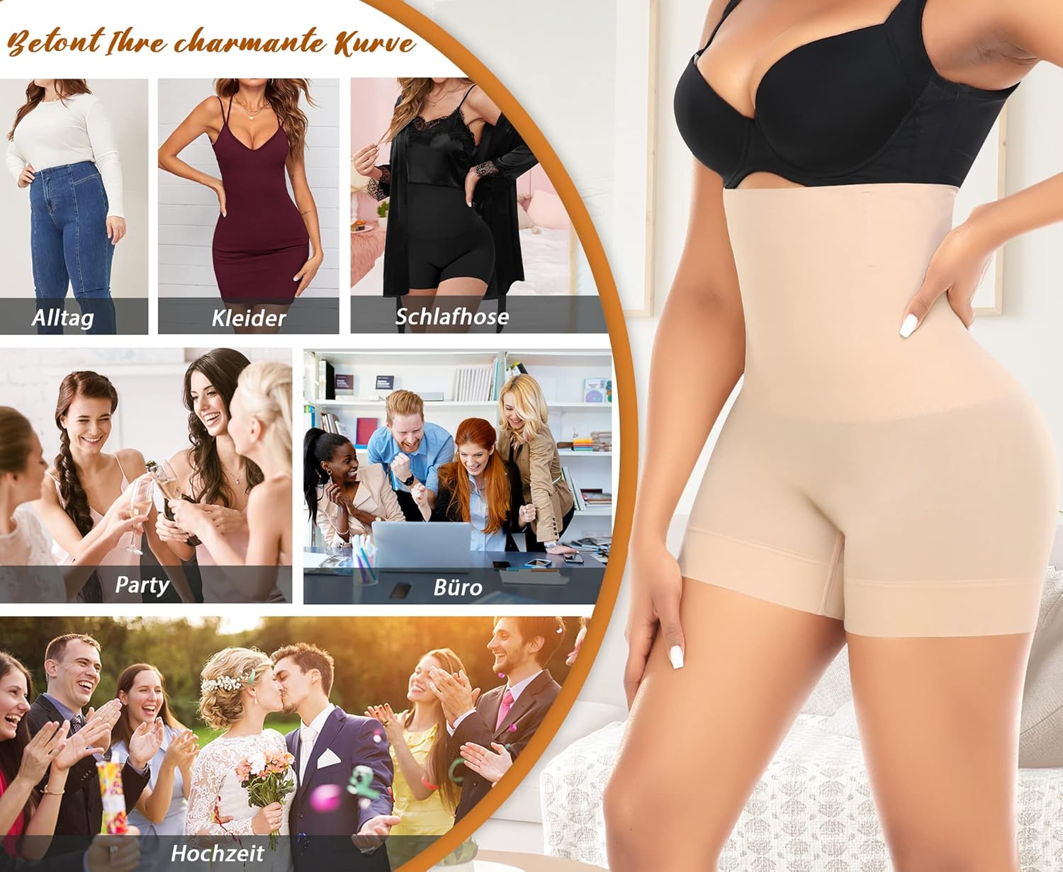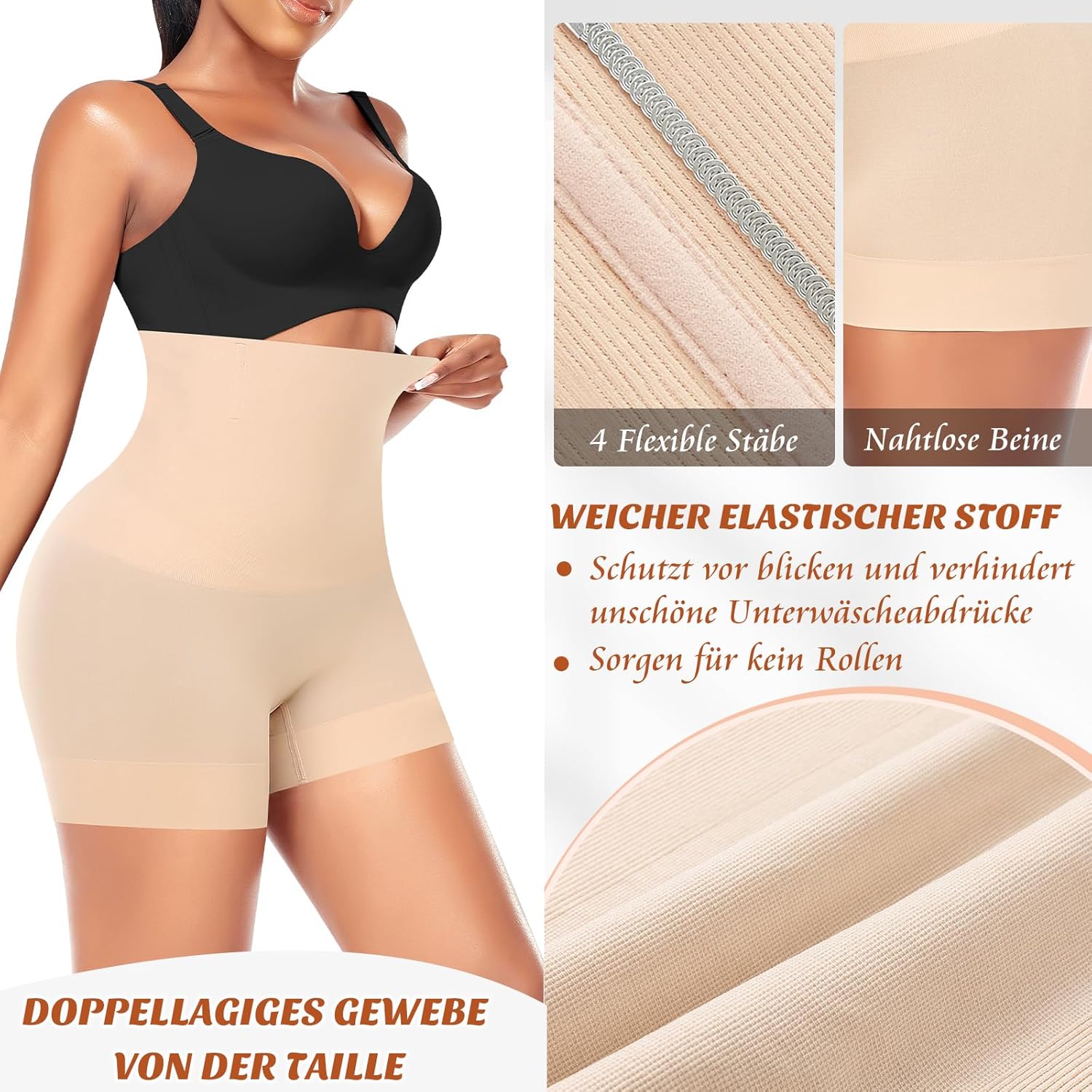 - 【Anti-Roll-Design in der Taille】die Damen Bauchweg Miederhose wird 4 flexible Legierungrippen rund um Oberhosentaille eingelegt, die nicht nur die Taillenstütze anbieten und die Körperhaltung leicht verbessern, sondern auch den Bund immer an die