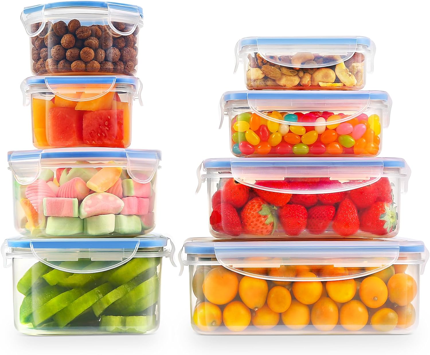 YASHE Frischhaltedosen mit deckel 16pcs (8 Behälter, 8 Deckel), Vorratsdosen Set, 100% Auslaufsicher