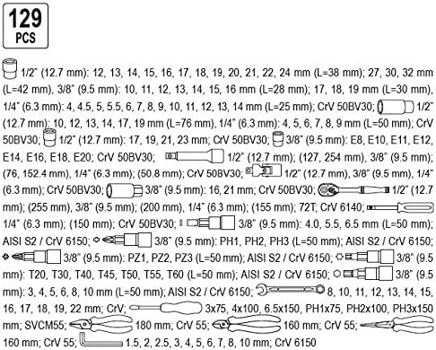 - Ratschen: 1/4', 3/8' und 1/2' Feinverzahnt mit 72 Zähnen 5 Grad Drehwinkel