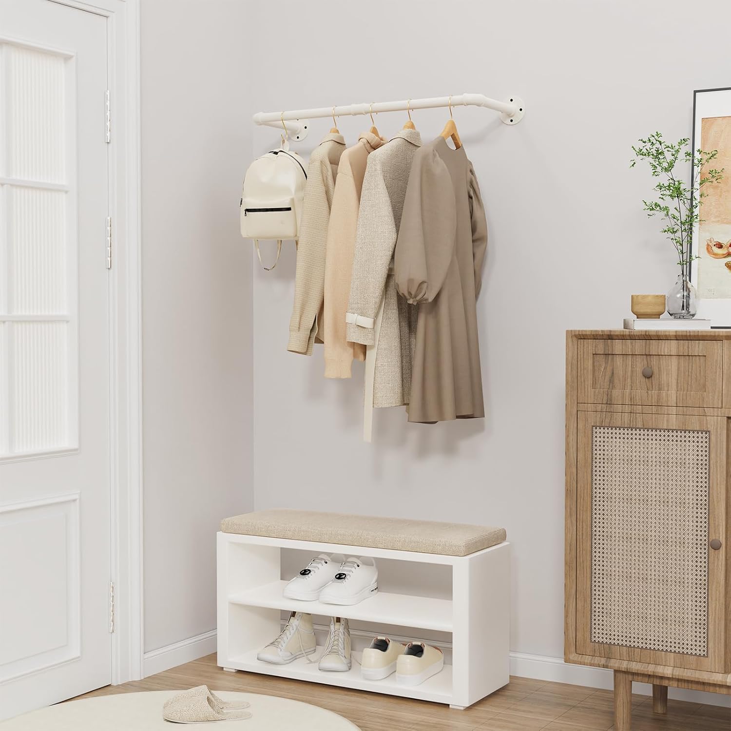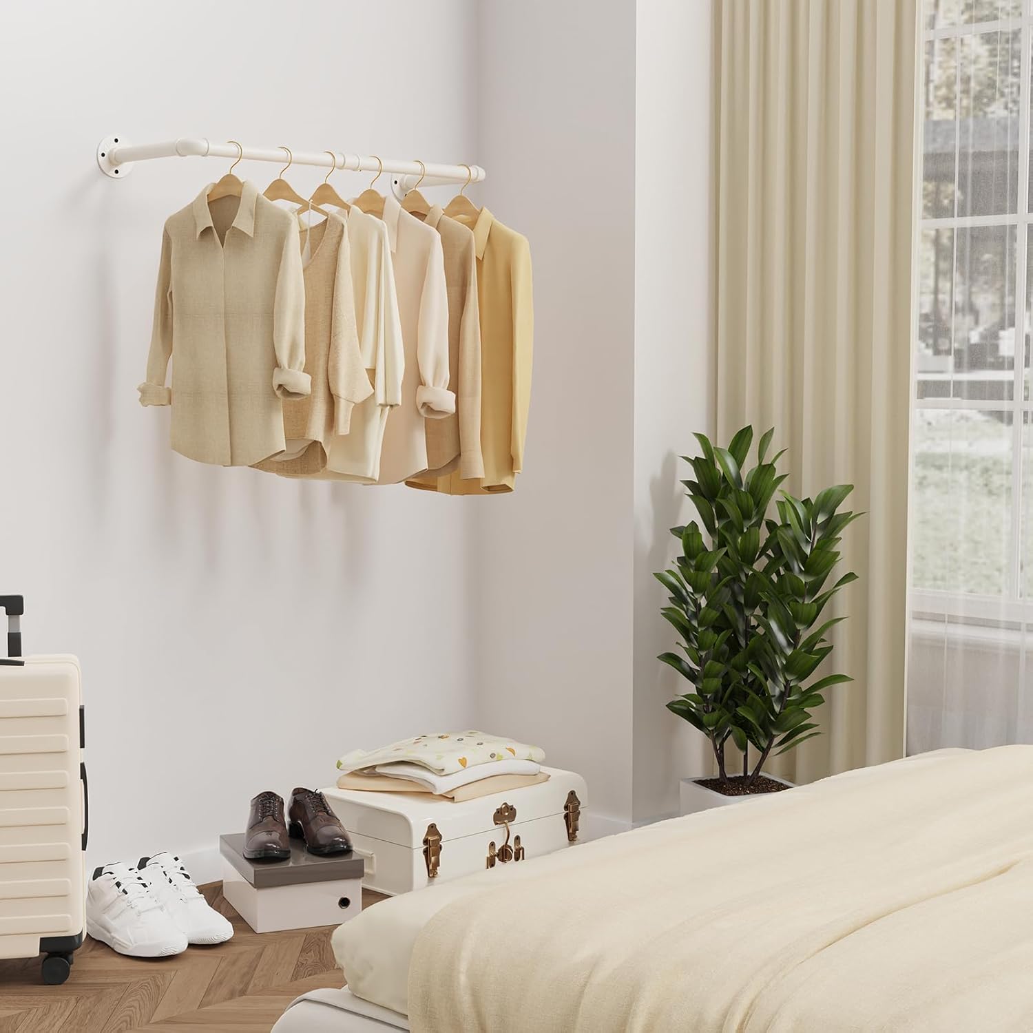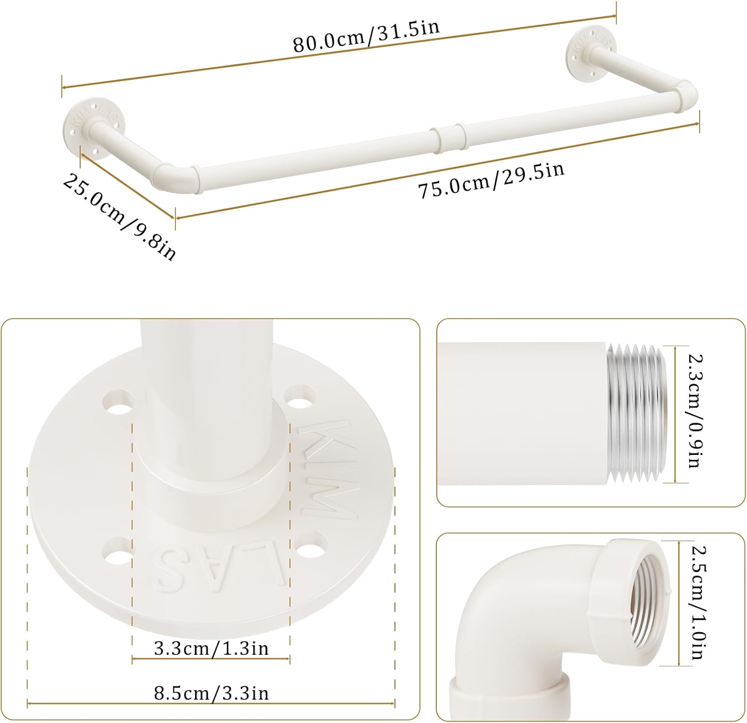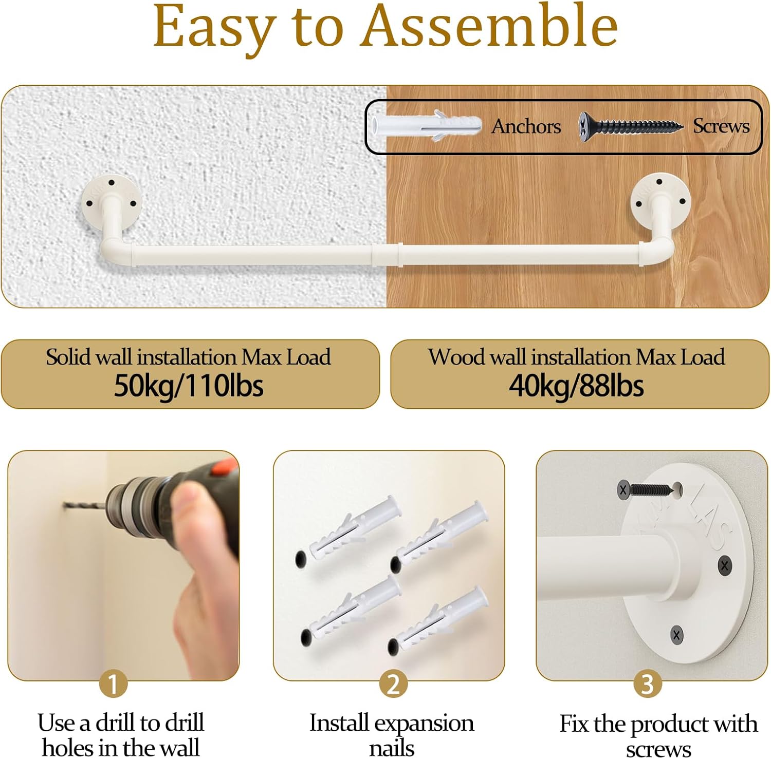 - WAS SIE BEKOMMEN: 1 hochbelastbaren Kleiderstangen, die sich an der Wand anbringen lassen und viel Platz für Ihre Kleidungsstücke bieten. Als Geschenk wird eine Rolle Rohmaterialband für die Verbindung von Mantelstange und Rohrfittings mitgeliefert,
