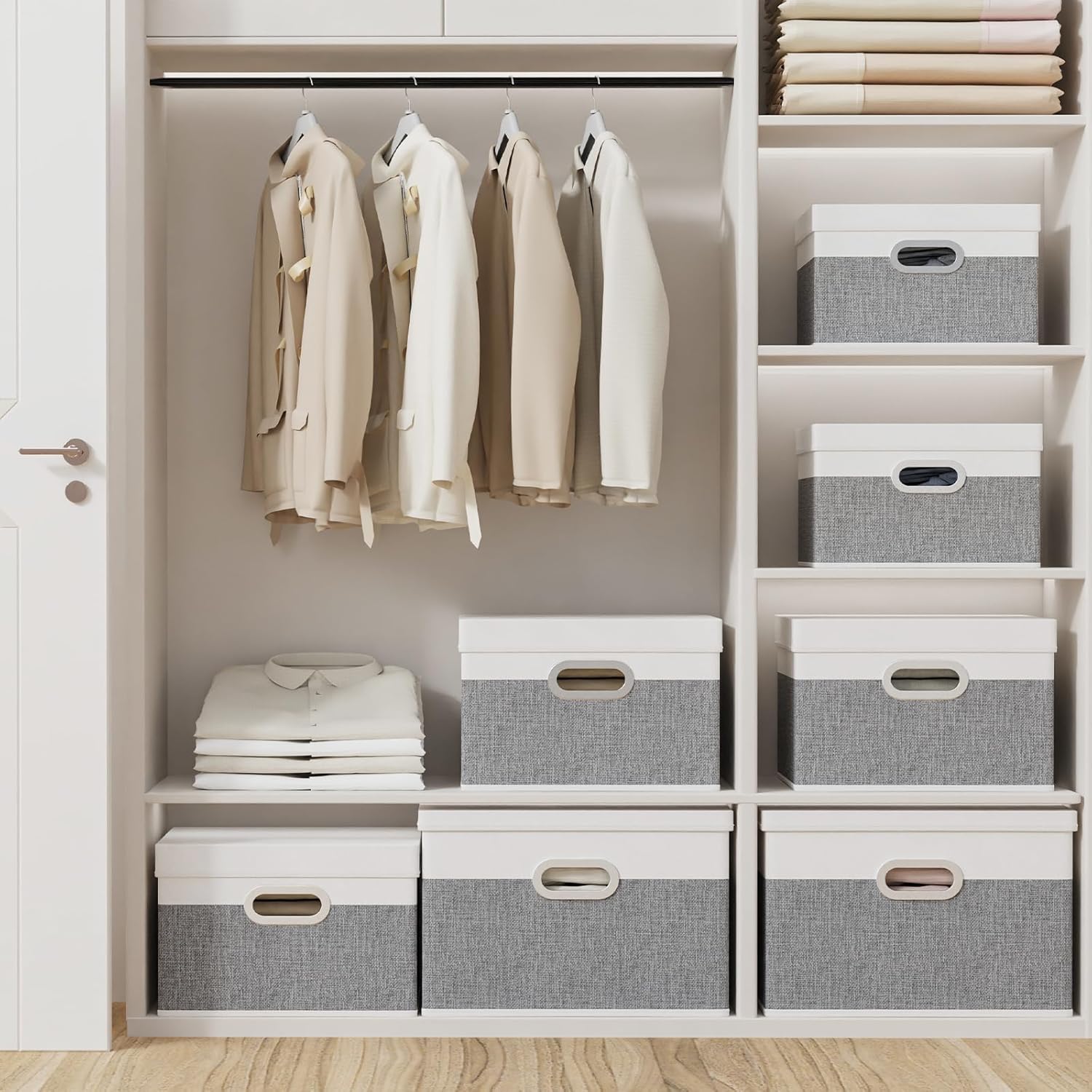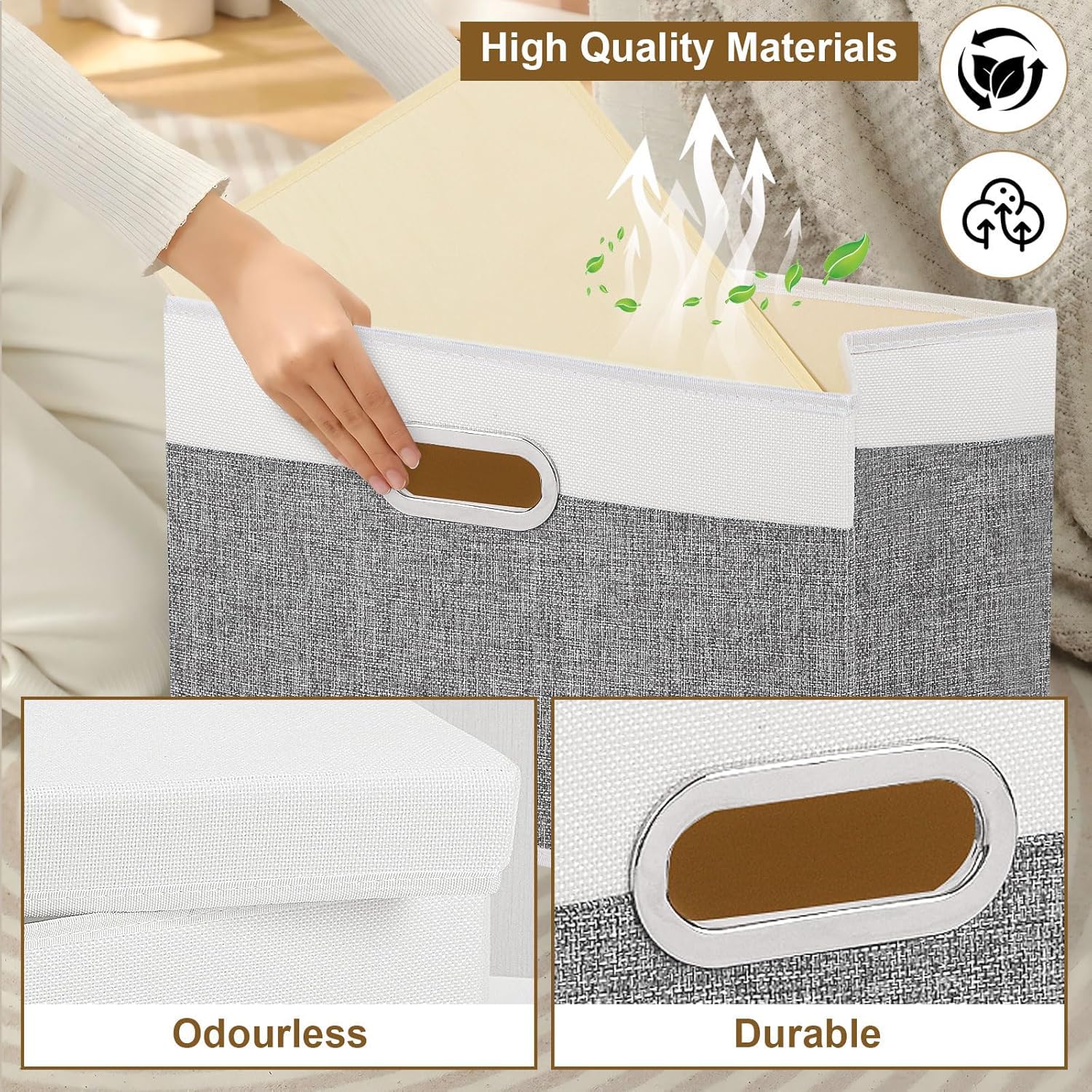 Yawinhe Aufbewahrungsbox mit Deckel, Faltbare Leinentuch Kleidung Ablagekorb, Waschbare, Stoffbox, f