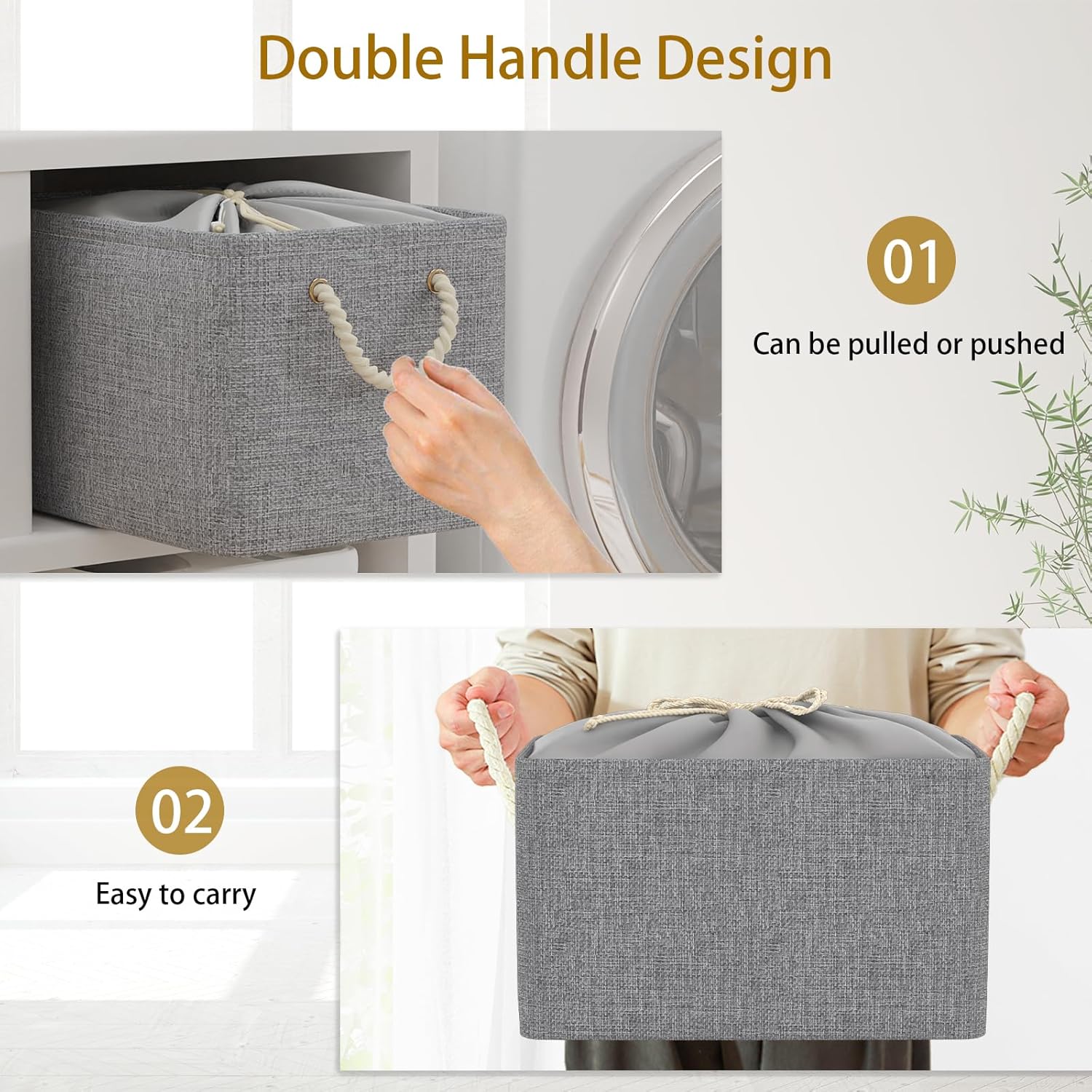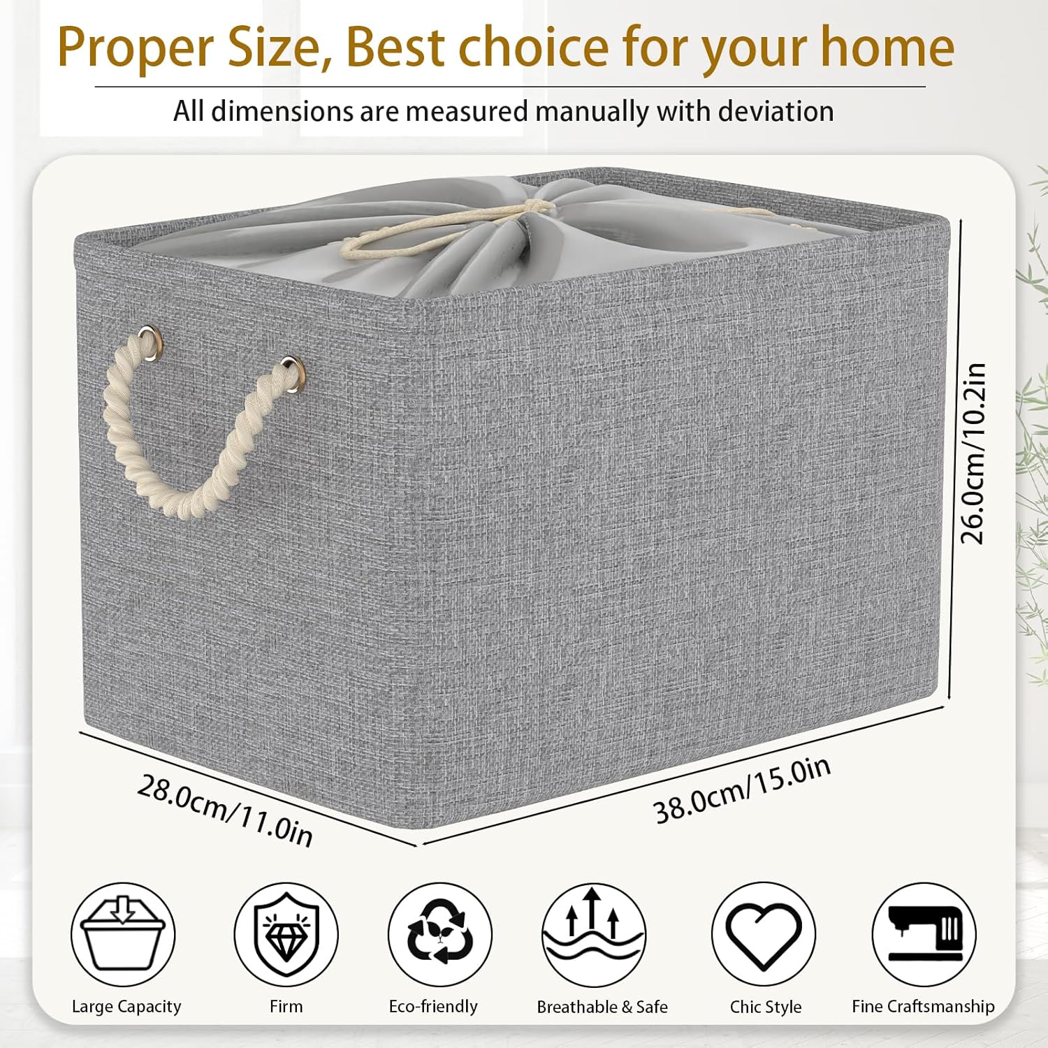 Yawinhe 3er Set Aufbewahrungsbox mit Deckel, Faltboxen aus Stoff mit Kordelzug-Abdeckung und 2 Griff
