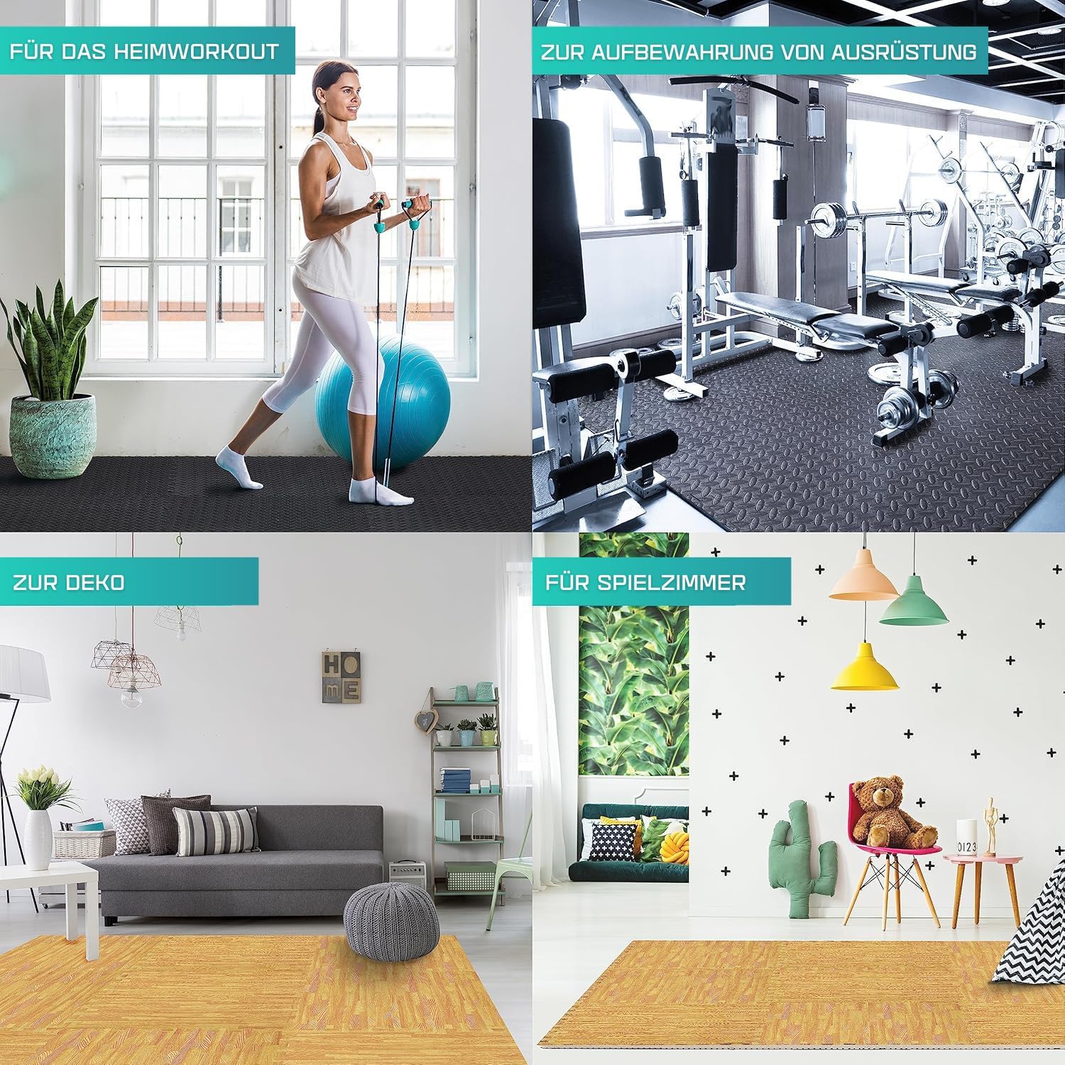 • ROBUST & RUTSCHFEST: Der Sportboden und die Bodenmatte im Fitnessraum bestehen aus hochwertigem, hochdichtem EVA-Schaum; Die Fitness-Bodenmatte hält intensiven Workouts stand und bietet eine rutschfeste Oberfläche; Garantiert Stabilität und Sicherheit