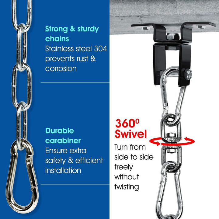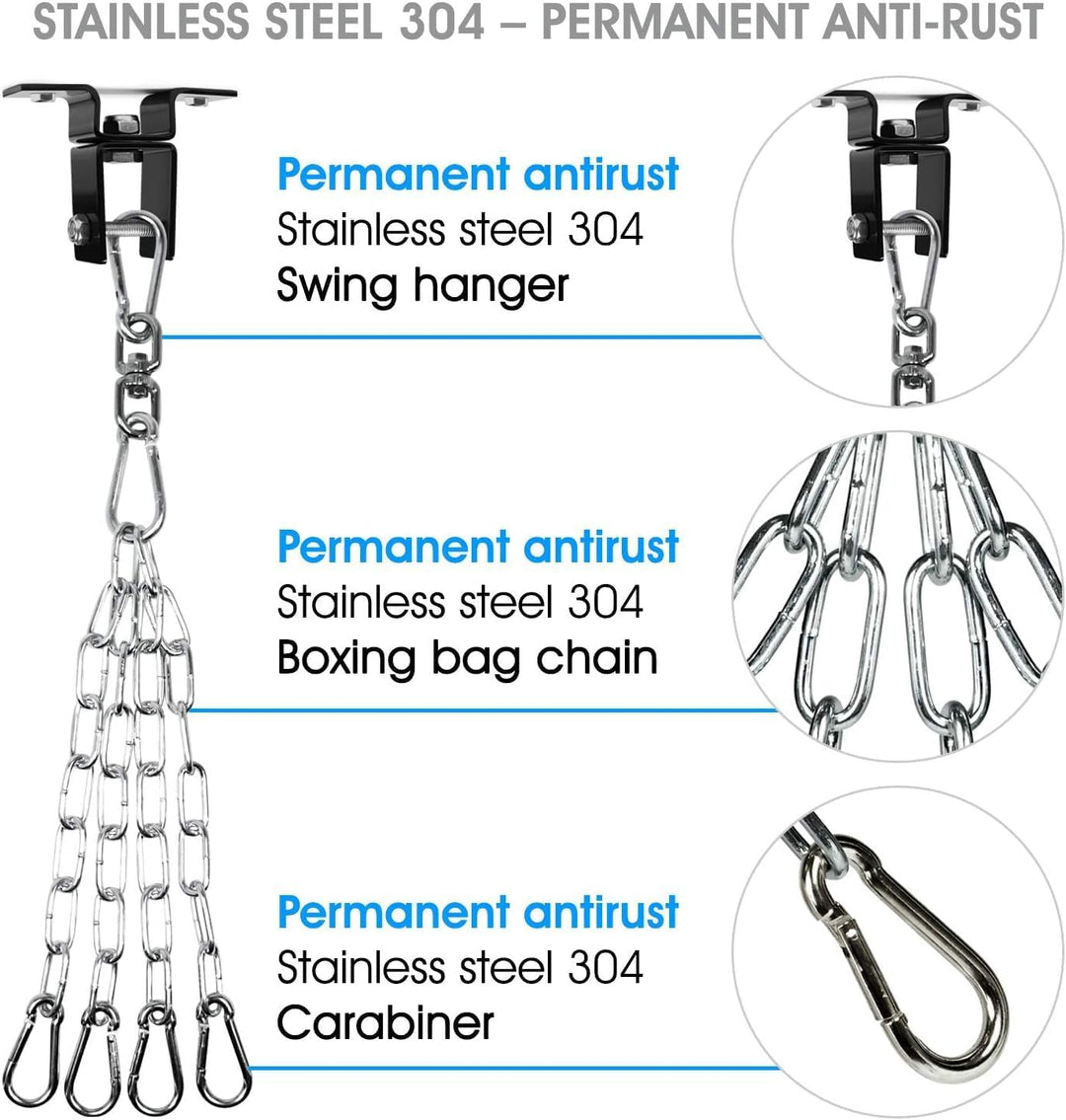 - SICHERHEIT UND STABILITÄT Das feste Design sorgt für verwicklungsfreie Nutzung während des gesamten Trainings, lässt den schweren Taschenaufhänger reibungslos und leise drehen und ist während des Gebrauchs nicht geneigt.