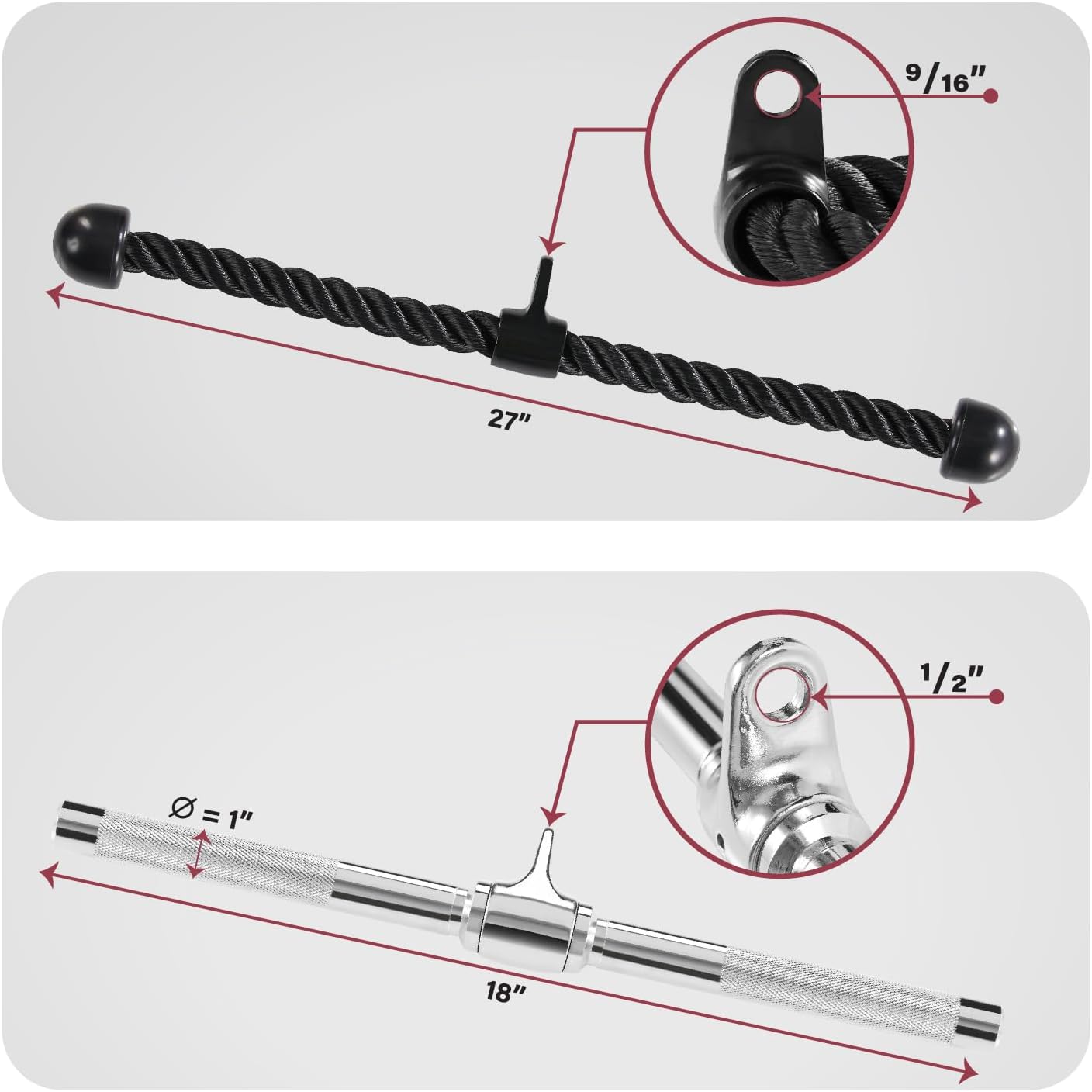 - 68,6 cm langes Tricep-Seil: Das geflochtene Seil mit einer robusten, verchromten Befestigung kann an jedem universellen Fitness-System für mehrere Workouts befestigt werden. Grosse Gummiblöcke am Ende des Seils verhindern ein Verrutschen und erhöhen