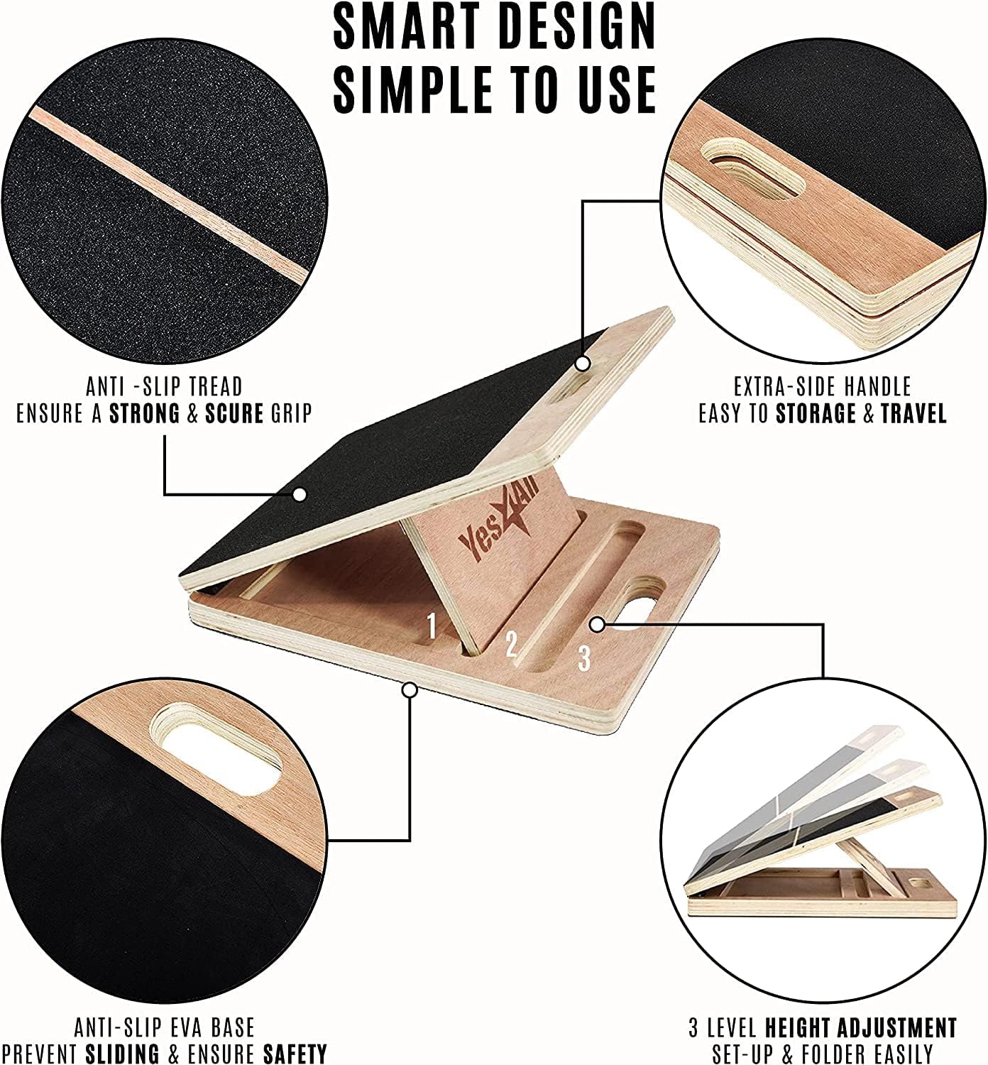 Yes4All Slant Board Schrägbrett aus Holz/Stahl, Verstellbarer und tragbarer Wadendehner, Trainingsge