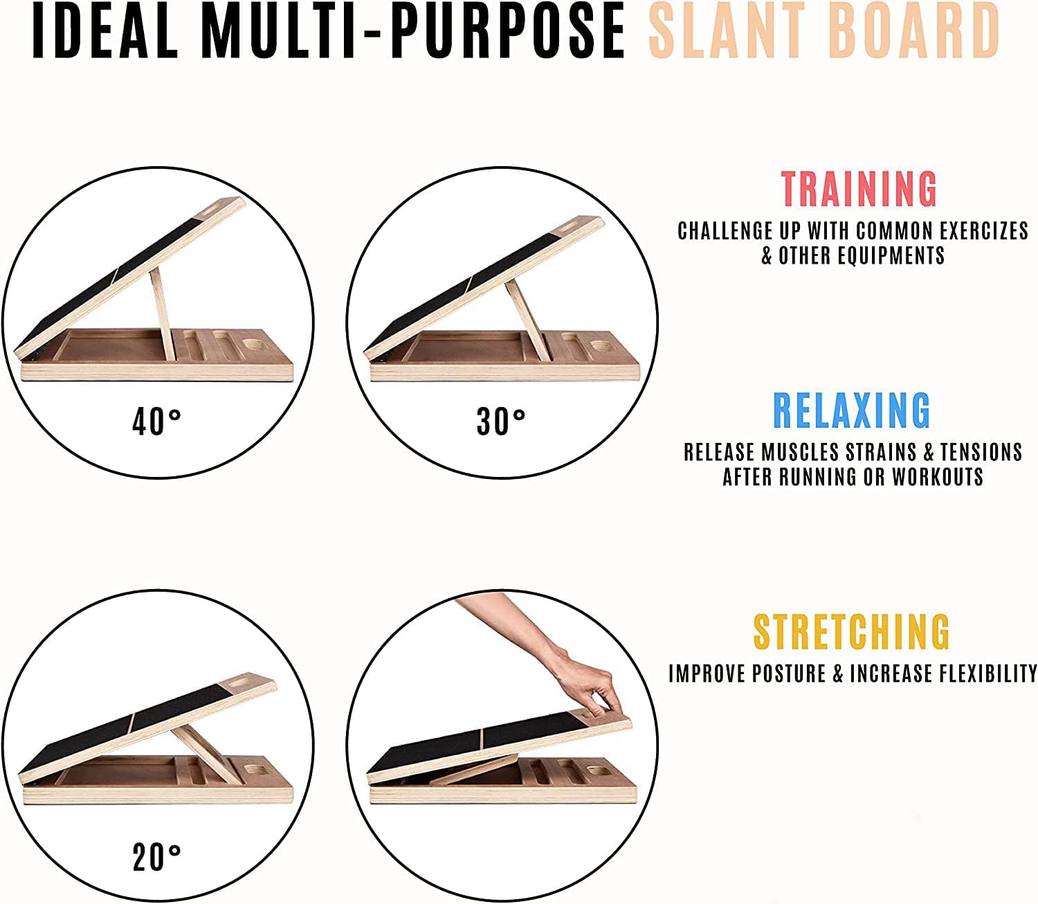 • 3-WINKEL-FÄHIGKEIT: Yes4All Wooden Slant Board kann in 3 verschiedenen Winkeln (20, 30 und 35 Grad) eingestellt werden, um Ihr Training abwechslungsreich zu gestalten und allen Fitnessniveaus gerecht zu werden, vom Anfänger bis zum Fortgeschrittenen