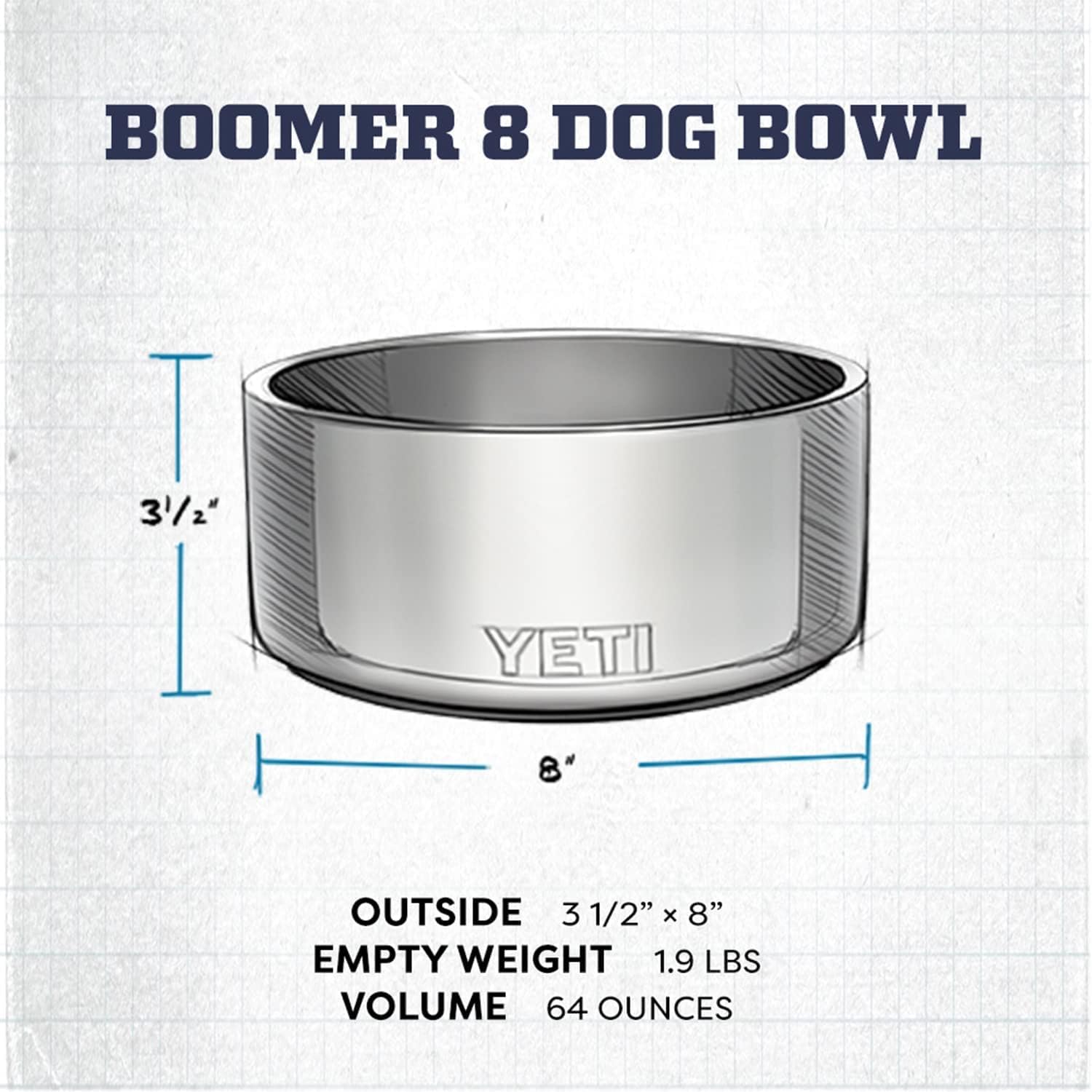 YETI Boomer 8 Dog Bowl Navy Navy ONE SIZE