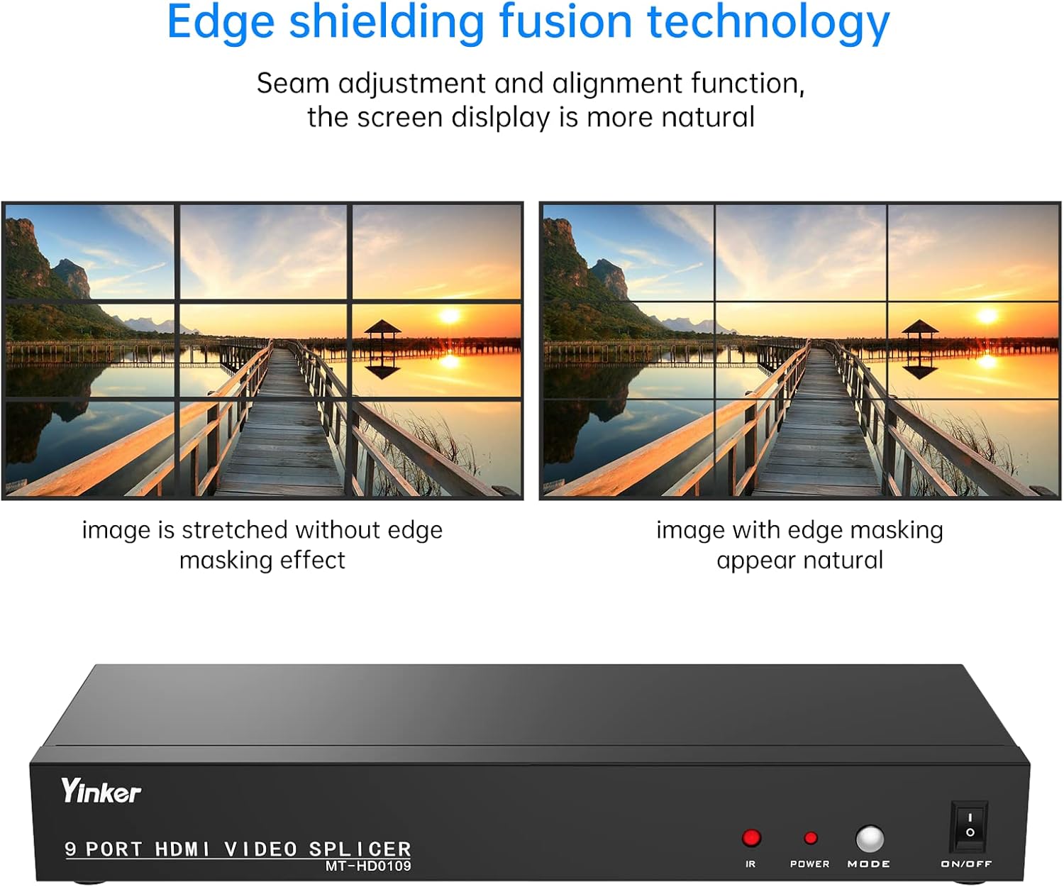 Yinker Videowand Controller 3x3 HDMI Video Wall Processor 1080P@60Hz Unterstützt 13 Modi - 1 HDMI In