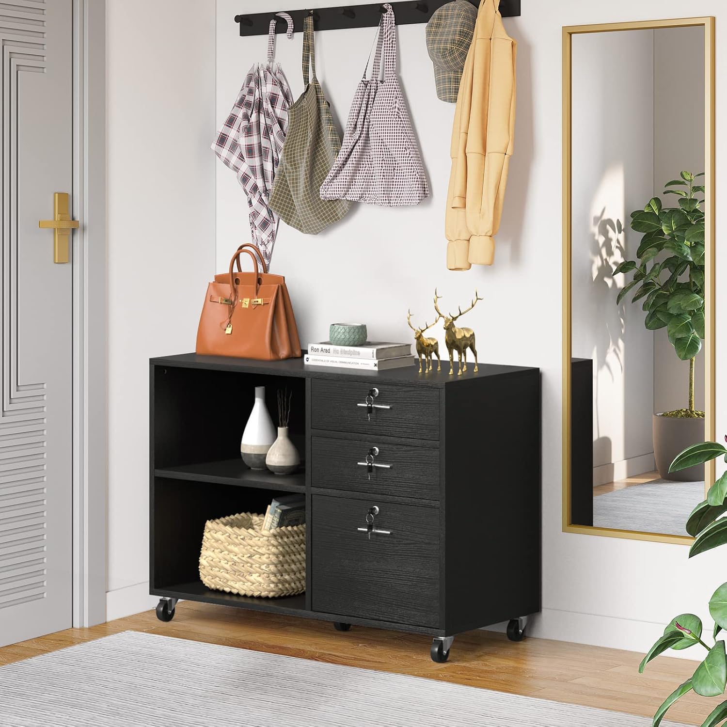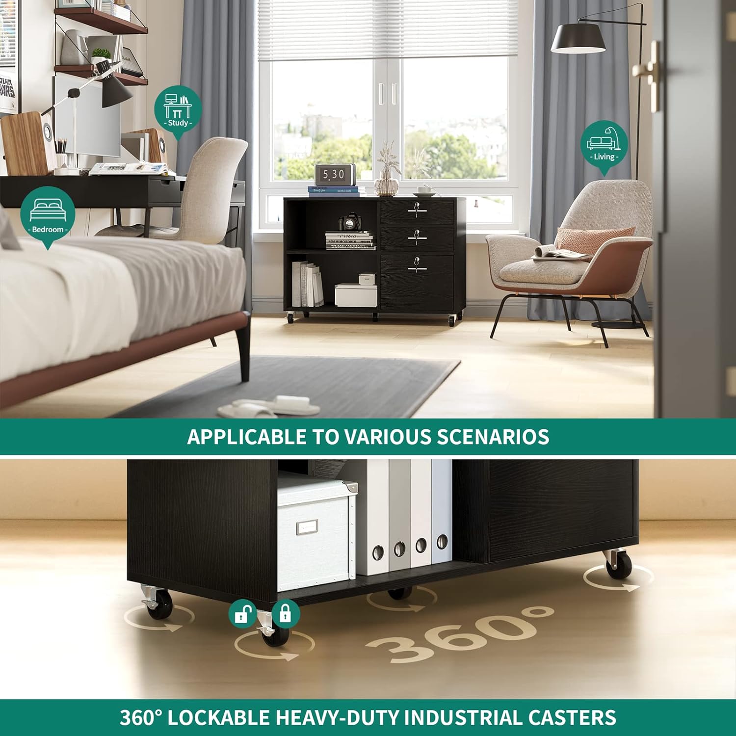 - YITAHOME Aktenschrank Abmessungen: 97 x 34 x 65cm, Gewicht: 24,4 Kilogramm, hergestellt aus 1,6cm dicken PB Panels, leisten insgesamt 68 Kilogramm, ausgestattet mit 5 glatten Rädern für ruhige und flexible Mobilität, von denen 2 mit eingebauten