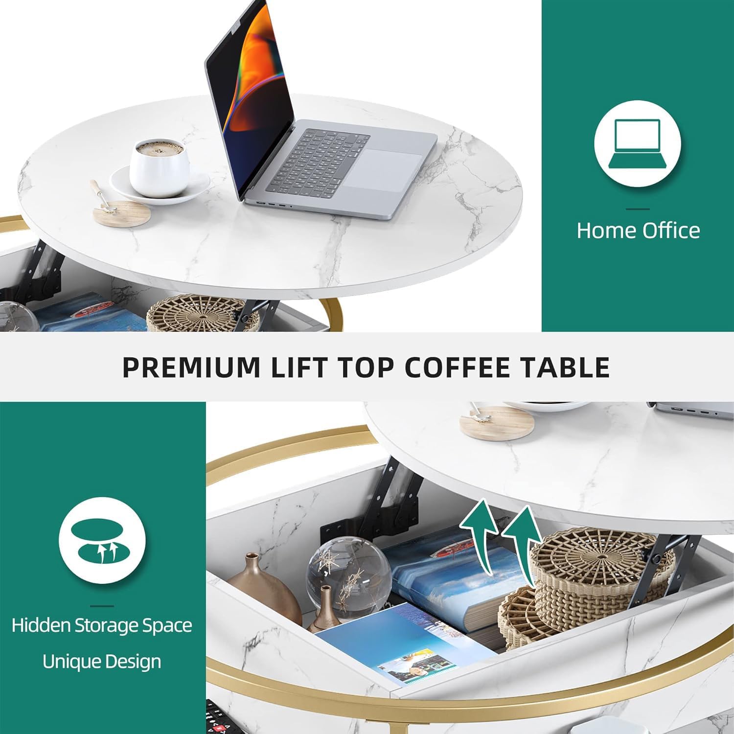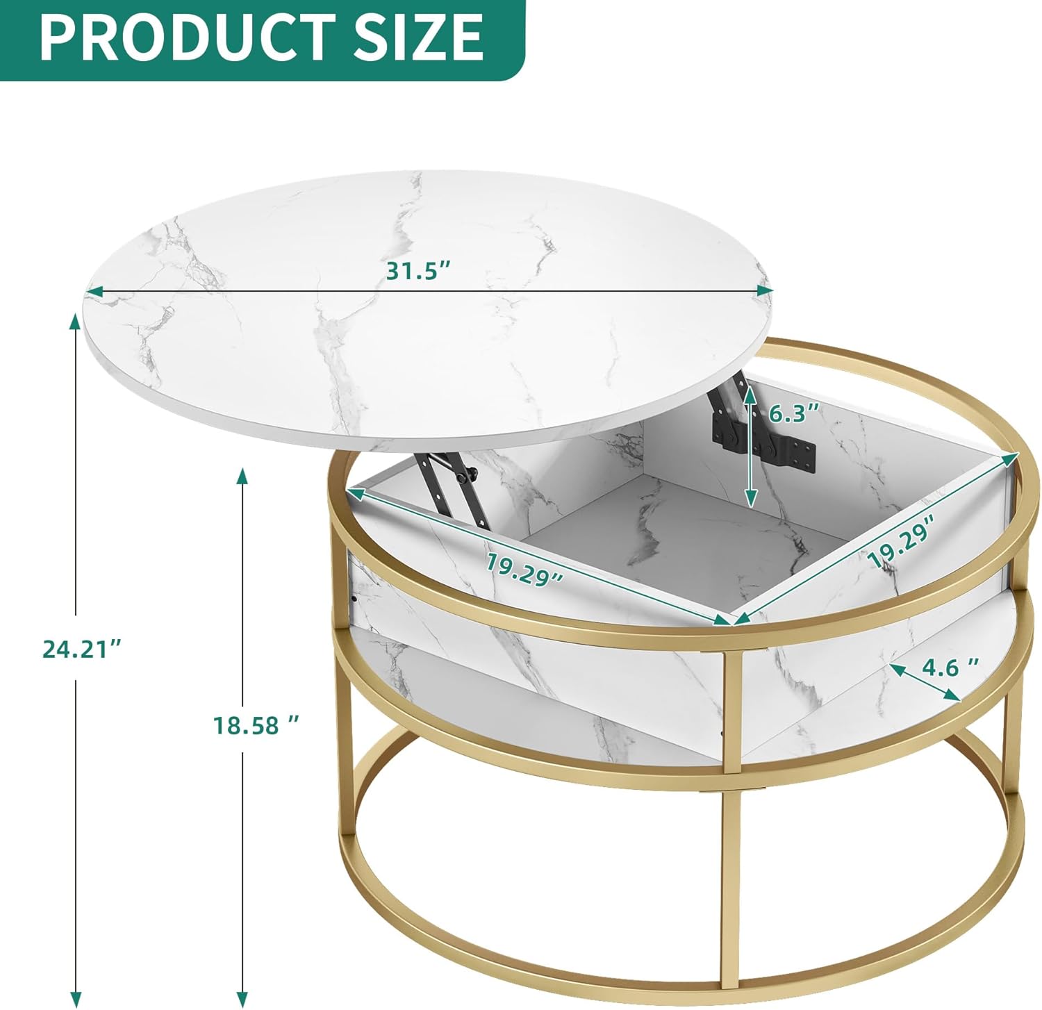 - Couchtisch Höhenverstellbar: Runder Couchtisch hat eine einzigartige Lift-Top-Arbeitsfläche, mit der Sie bequem auf dem Sofa arbeiten, schreiben oder speisen können. Der robuste Metall-Hebemechanismus sorgt dafür, dass die Tischplatte sanft und leise