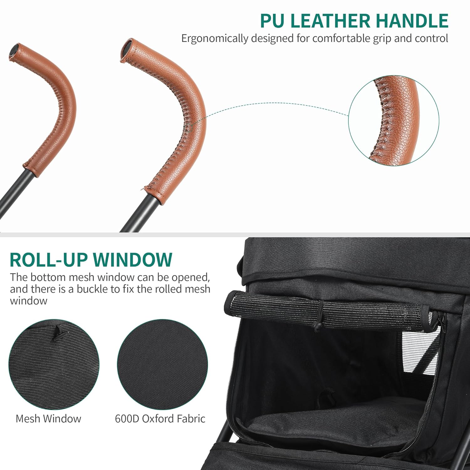 - Premium-EVA-Räder mit Federung: Die vier Räder des Hundekinderwagens verfügen über eine Federstossdämpfung, und der Körper verfügt auch über ein Stossdämpfungsdesign, um Haustieren ein reibungsloses, profitieren Sie von einer komfortablen Fahrt