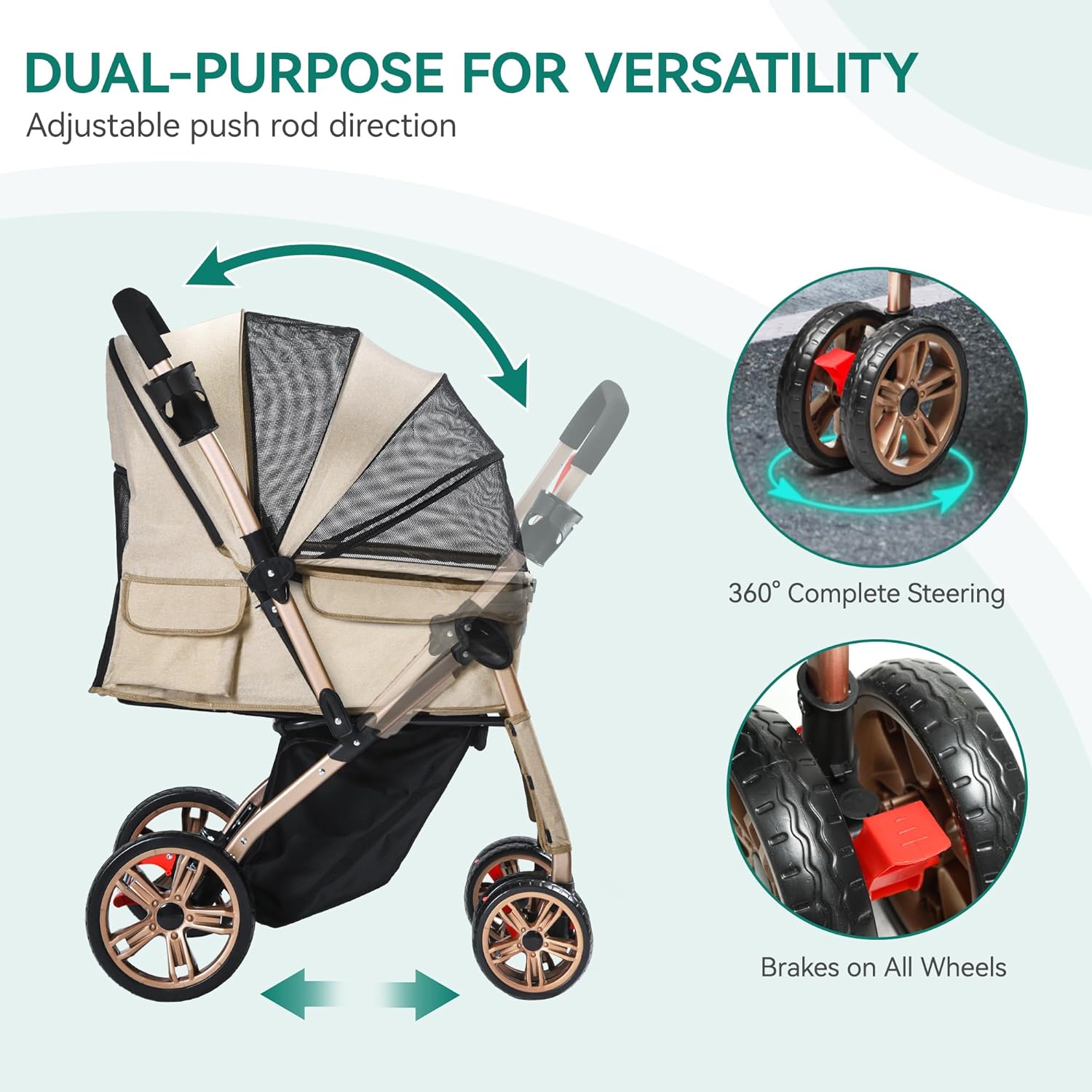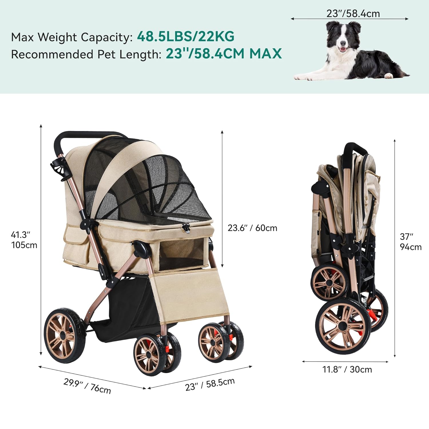 - Drehbare Schiebestange: Der Hundebuggy klappbar bietet 180°-Richtungswechsel - vorwärts für Entdeckertouren oder rückwärts für Blickkontakt. Masse: 76×58,5×105 cm, Geeignet für mittelgrosse Hunde mit einer Länge von bis zu 58,4 cm und einem