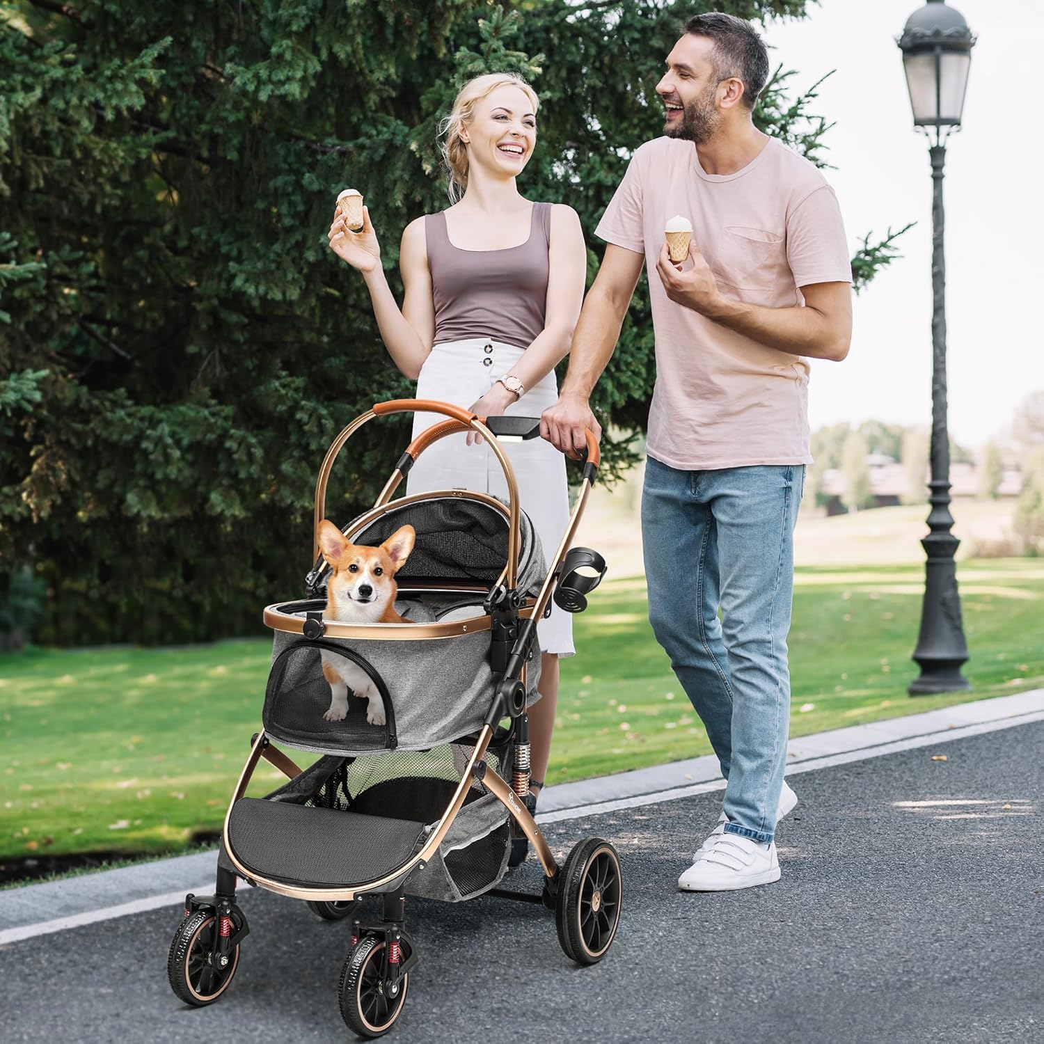 - HOCHWERTIGES MATERIAL- Der Luxus-Kinderwagen für Hunde und Katzen bietet mehr Komfort als andere Buggys für Haustiere. Die Struktur des Kinderwagens besteht aus einem überlegenen, langlebigen, biegefesten Aluminiumrahmen. Ausgestattet mit 600D Oxford
