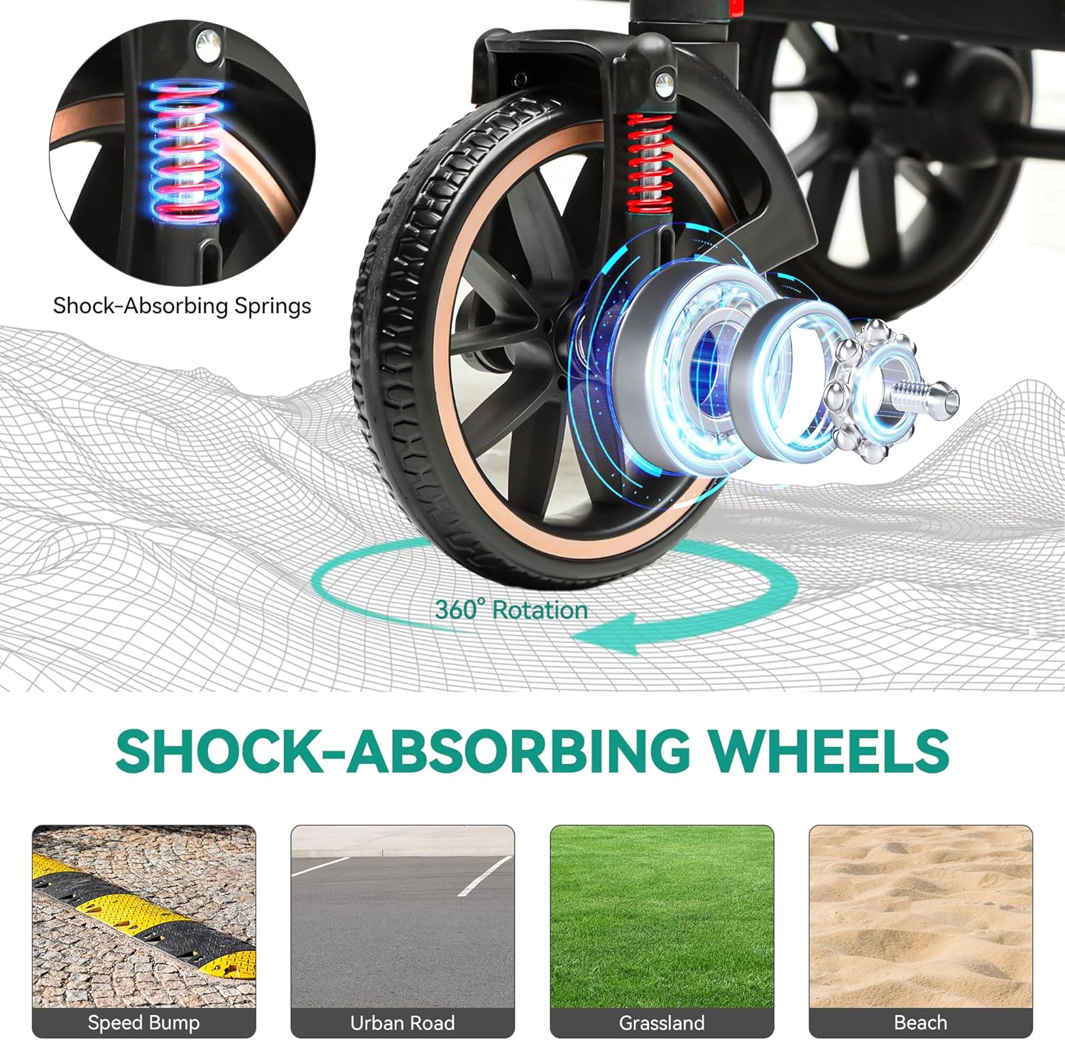 - SICHERHEIT ZUERST- Die Räder des Hundewagens verfügen über doppelte Stossdämpfungsfedern, die die Stossdämpfung vollständig realisieren und Stabilität gewährleisten können. Der Kinderwagen ist glatt und einfach zu bedienen. Die Fahrt ist stabil,