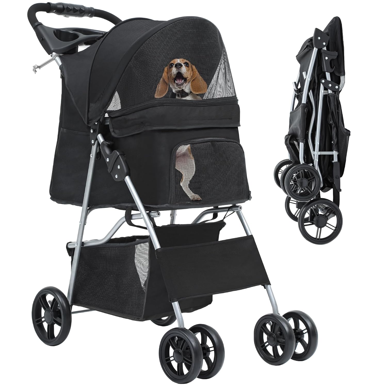 - Premium-EVA-Räder mit Federung: Die vier Räder des Hundekinderwagens verfügen über eine Federstossdämpfung, und der Körper verfügt auch über ein Stossdämpfungsdesign, um Haustieren ein reibungsloses, profitieren Sie von einer komfortablen Fahrt
