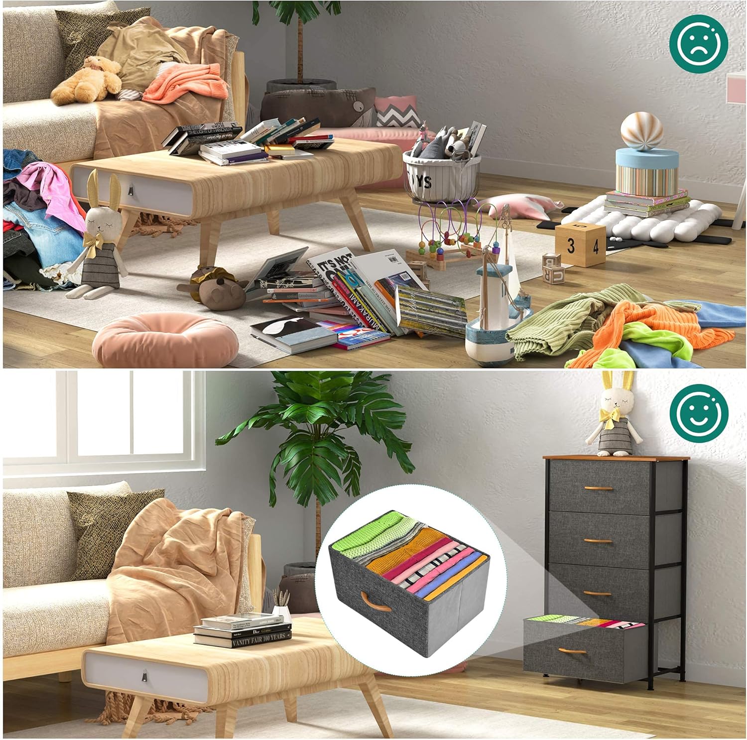 - LANGLEBIGER STOFF - Schubladenschrank die Vorderseite besteht aus hochwertigem kationischem stoff und die anderen seiten aus atmungsaktivem Vliesstoff(ohne Chemiegeruch); Pflegeleicht: mit einem feuchten Tuch abwischen und an der Luft trocknen lassen.