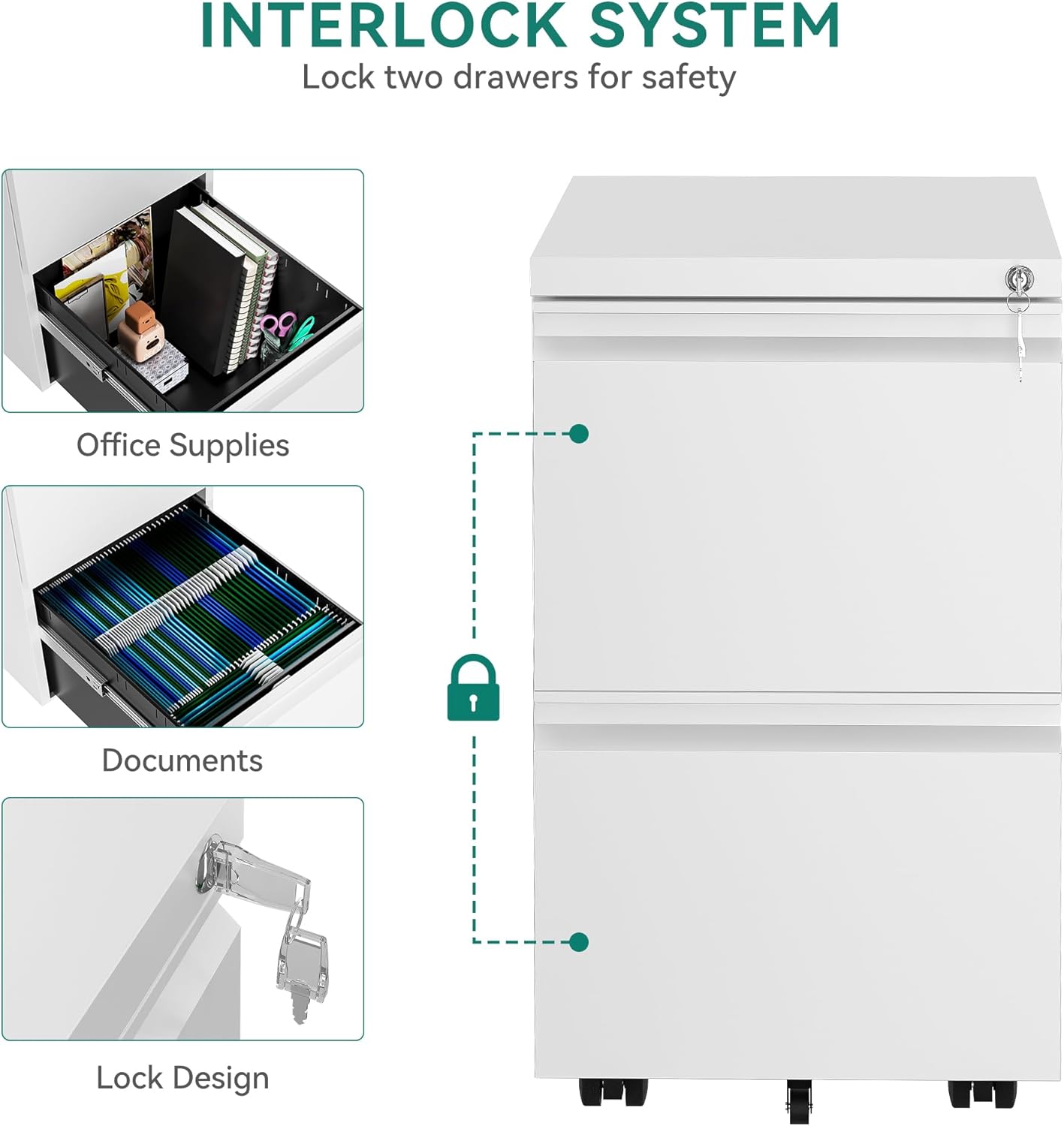 - 5 Rollen, Kippschutz-Design – Dieser mobile Aktenschrank ist mit 4 x 360° Lenkrollen und 1 x Anti-Kipp-Zentralrolle für hervorragende Mobilität ausgestattet; der Verriegelungsmechanismus verhindert, dass der Schrank umkippt.