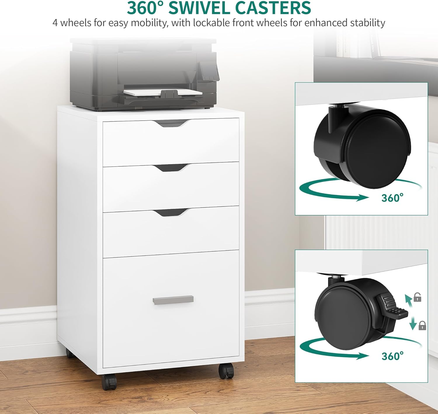 - GLATTE RÄDER – Der Aktenschrank ist mit 4 um 360 Grad drehbaren Rollen ausgestattet, sodass Sie ihn frei an jeden Ort bewegen können, ohne den Boden zu zerkratzen. Und die beiden vorderen Rollen verfügen über eingebaute Bremsen, die den Schrank an