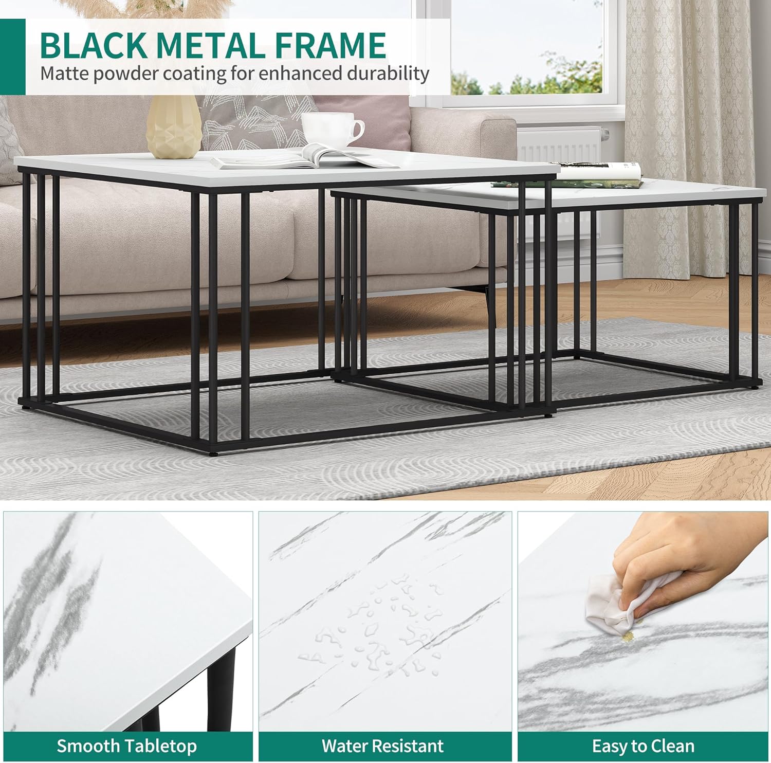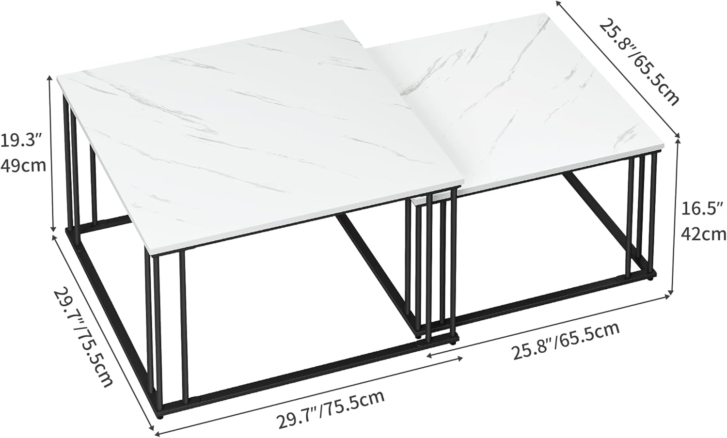 • Premium-Material - Dieser Couchtisch verfügt über ein robustes, mattschwarzes Metallgestell mit Pulverbeschichtung, das die Optik verbessert und gleichzeitig eine aussergewöhnliche Haltbarkeit gewährleistet. Die Tischplatte mit weissem Marmormuster