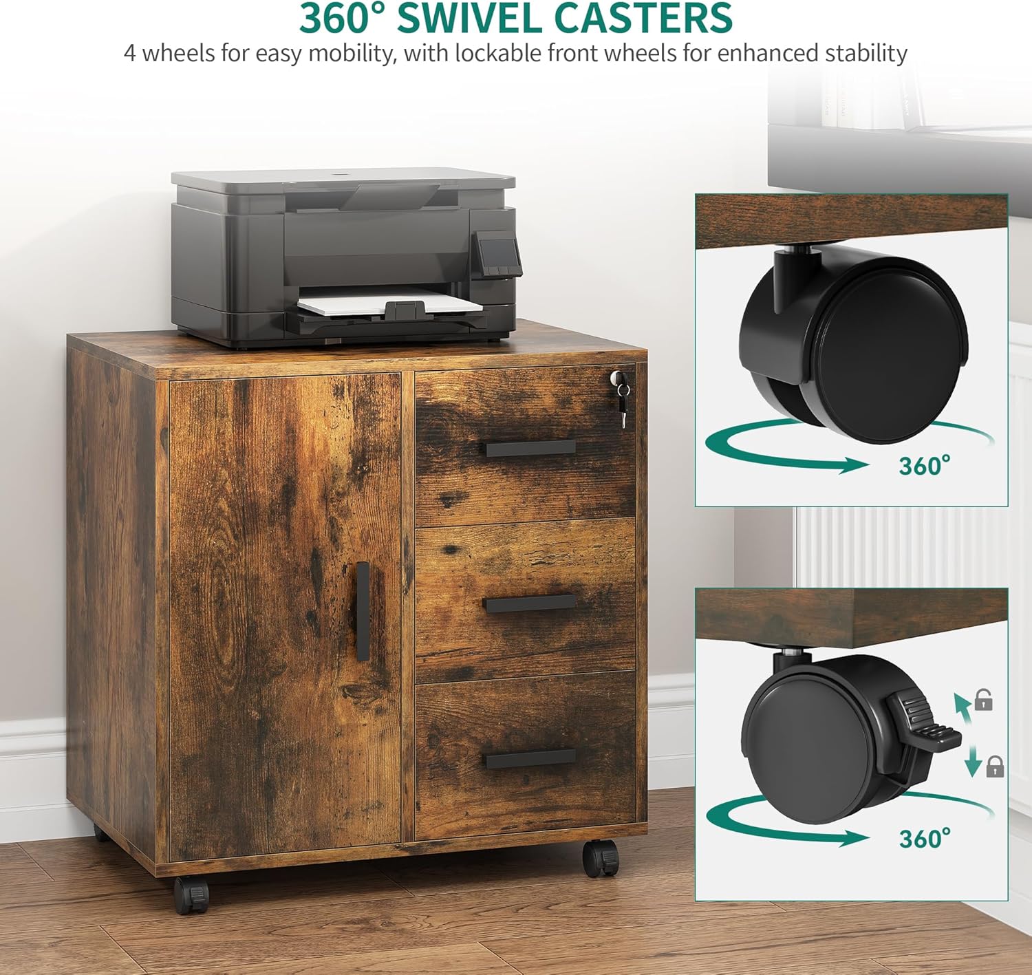 - SPEZIFIKATIONEN– Gesamtabmessungen: 60 cm L × 40 cm B × 57 cm H. Dieser Aktenschrank verfügt über 3 Schubladen und eine Tür. Dieses Design erleichtert die Aufbewahrung unterschiedlich grosser Gegenstände. Der geräumige Schreibtisch bietet Platz
