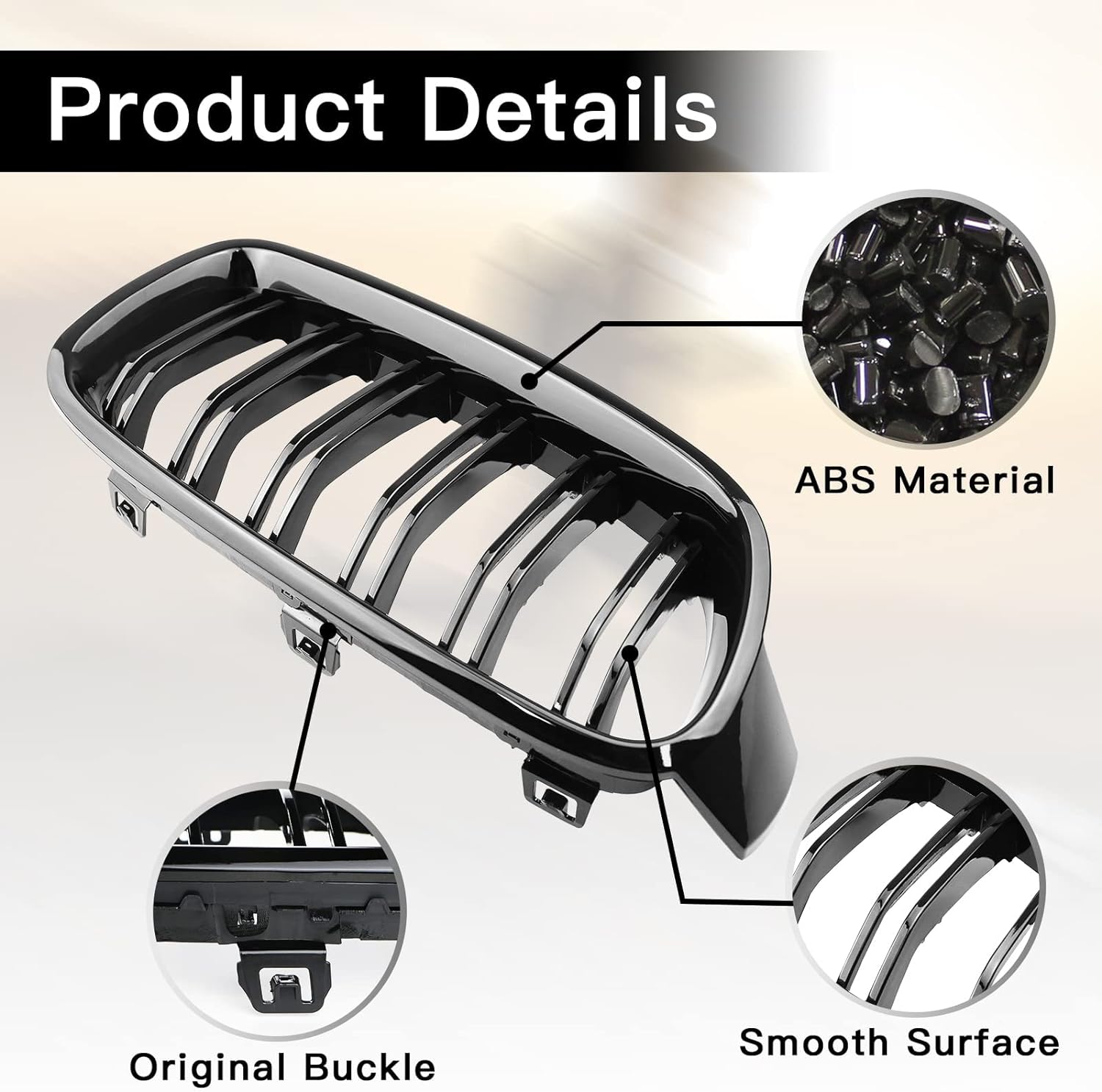 YIUBCZOQI F30 Kühlergrill für BMW 3er f30 Nieren Schwarz f30 f31Grill Glanz Schwarz Doppelsteg Sport