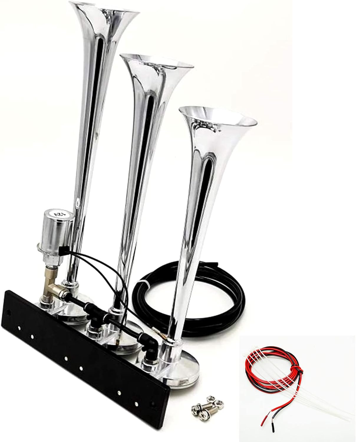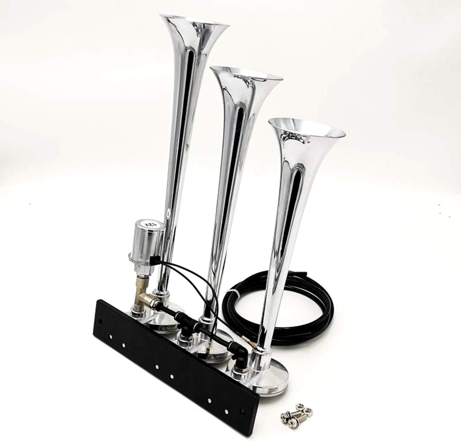 - Material und Grösse: glänzender silberner Dreirohrlautsprecher. Ausgabe: 160 Dezibel. Spannung: 12V.