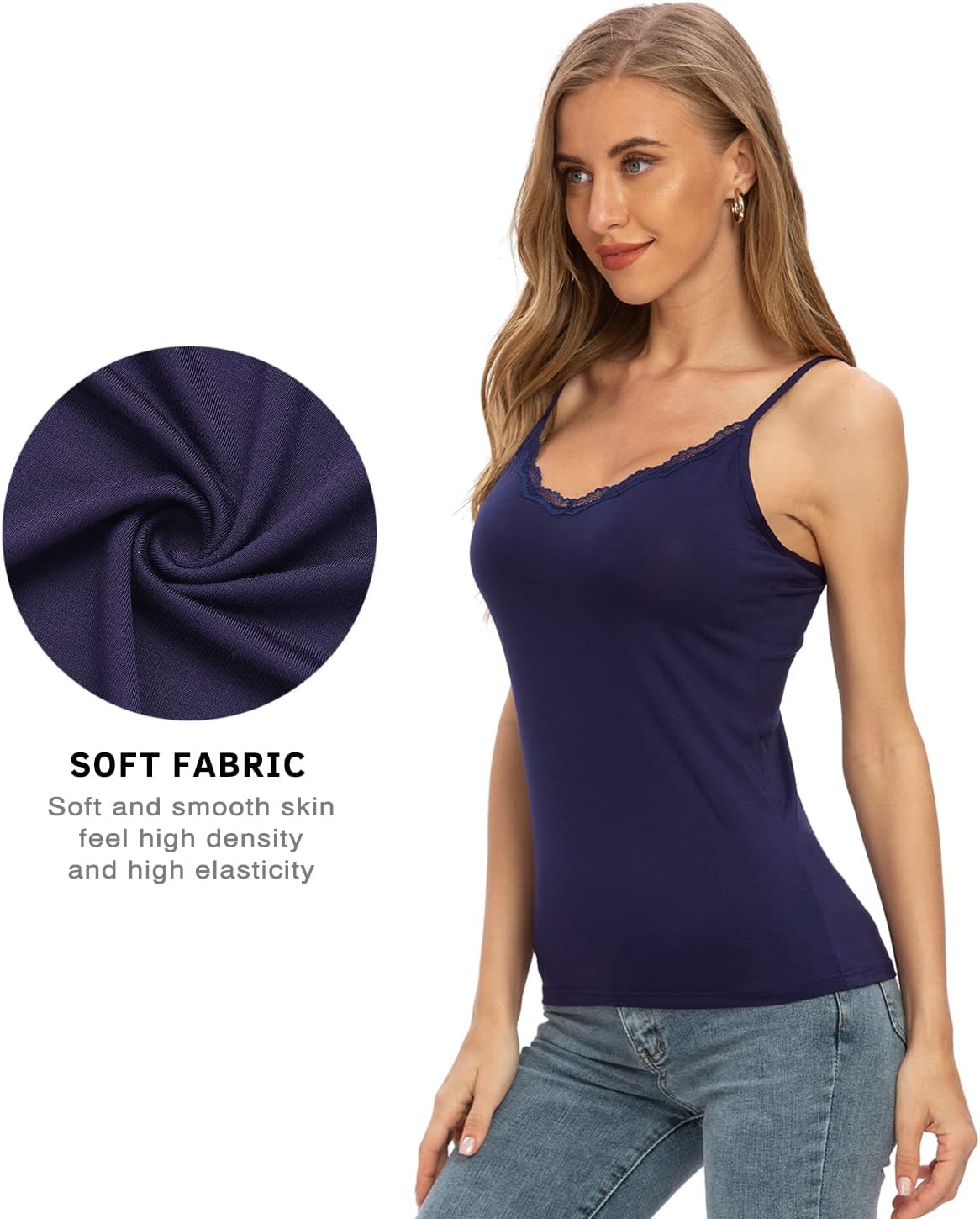 - Spaghetti-Trägern Unterhemd Material: Das Top mit Spitze besteht aus 95% Modal und 5% Spandex, das extrem weich und atmungsaktiv ist. Das Verstellbare Spaghettiträger Cami für Frauen hat eine glatte Haptik und eine leichte Textur, um Ihnen Komfort zu
