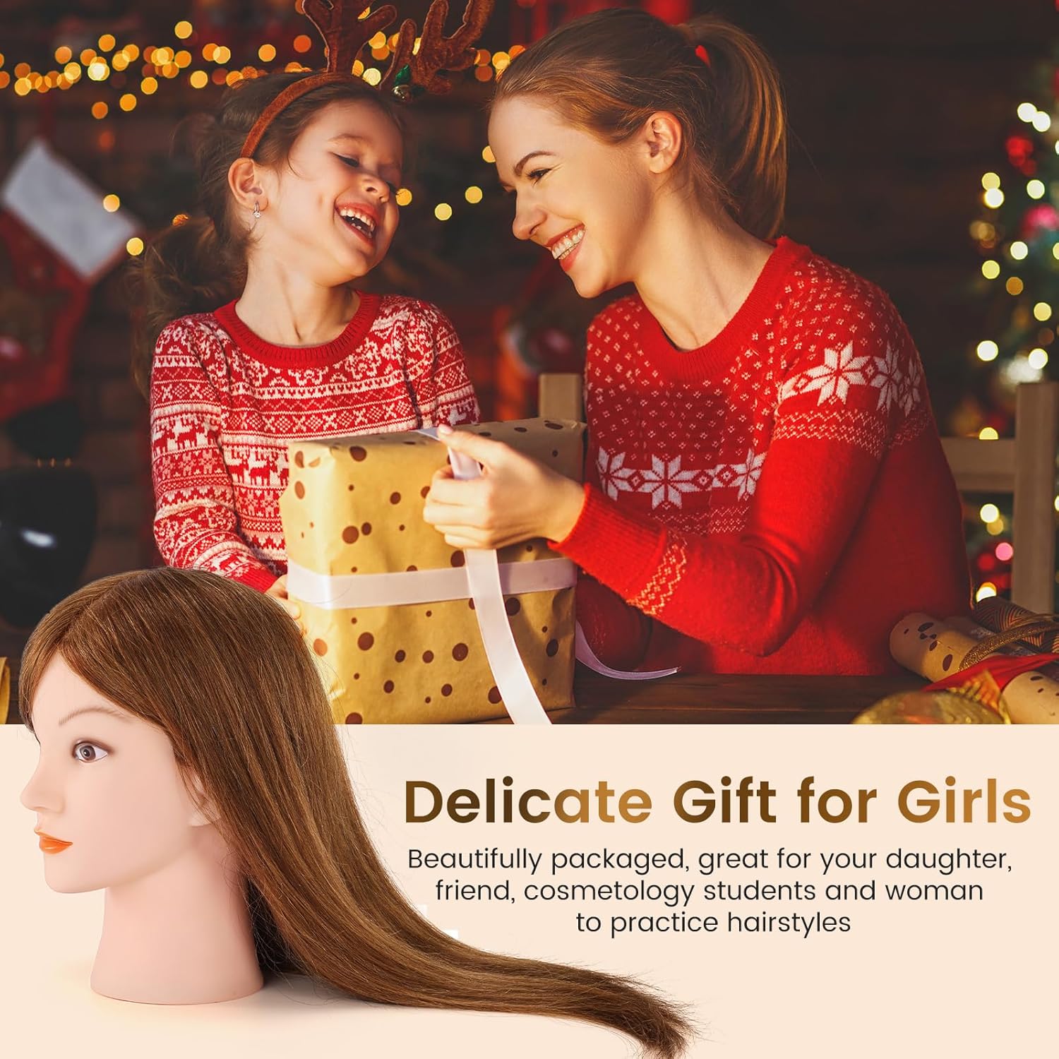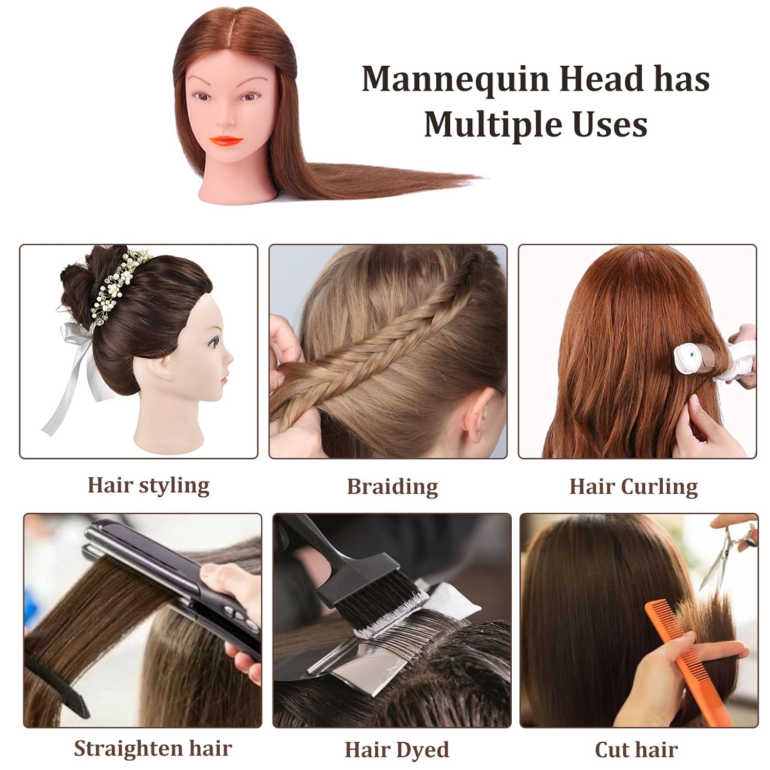 - 【Material】 Hergestellt aus 100 % Echthaar, superlanges Haar, leicht zu kämmen, perfekt für verschiedene geflochtene Haarstylings. 100 % braun Mannequin-Kopfhaar zum Schminken, Föhnen, Glätten, Dauerwelle und Locken, bleichen noch gefärbt werden