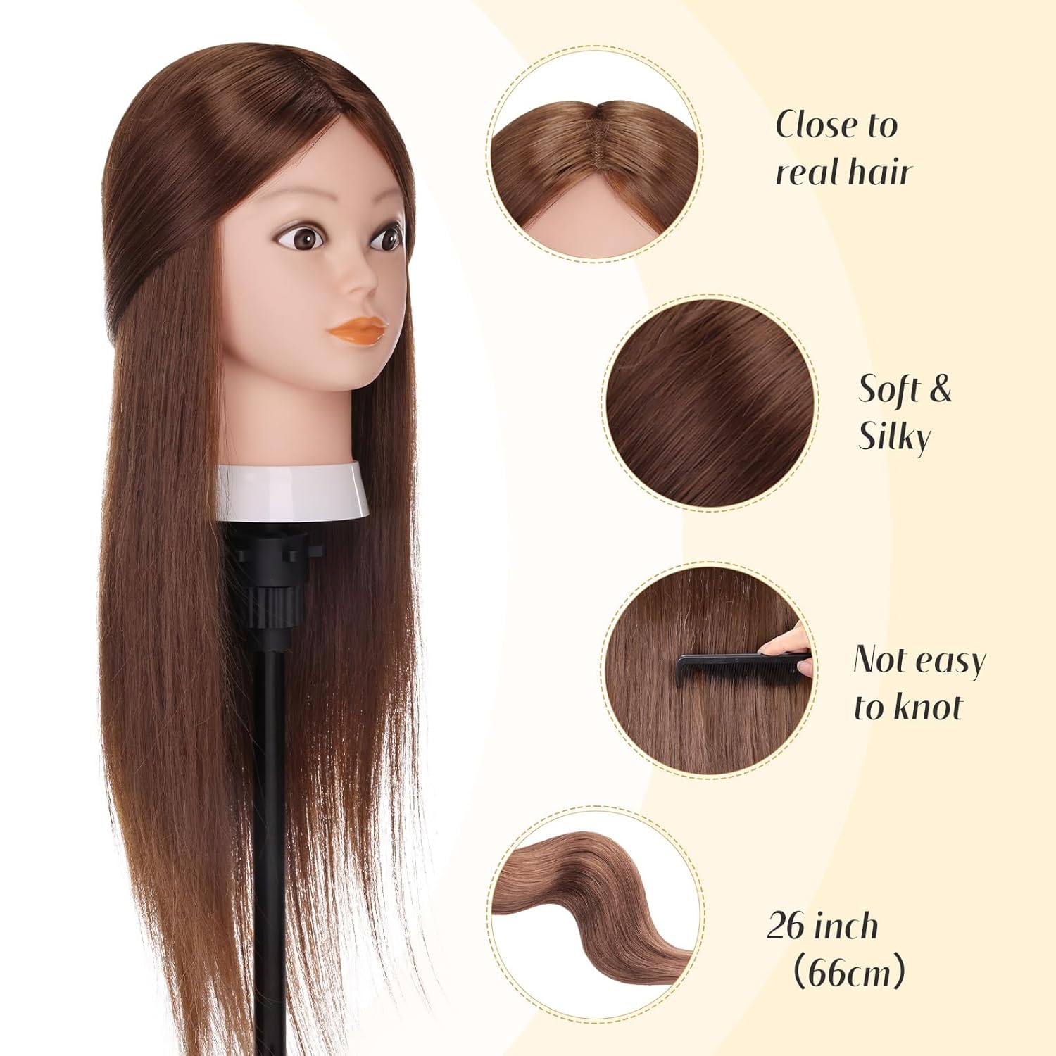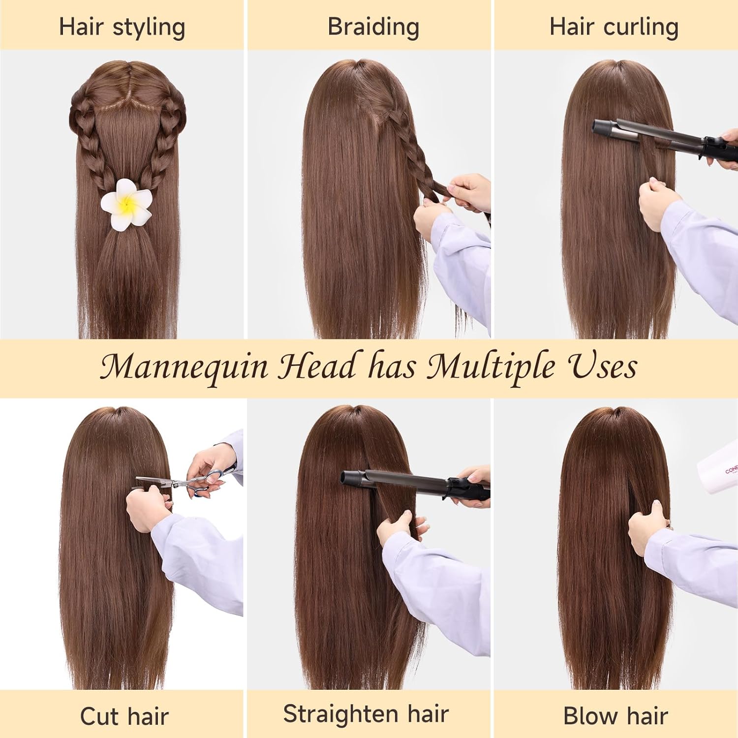- 【Material】 Hergestellt aus 80 % Echthaar + 20 % Kunstfaserhaar, superlanges Haar, leicht zu kämmen, perfekt für verschiedene geflochtene Haarstylings. Mannequin-Kopfhaar zum Schminken, Föhnen, Glätten, Dauerwelle und Locken. Achtung: Es kann