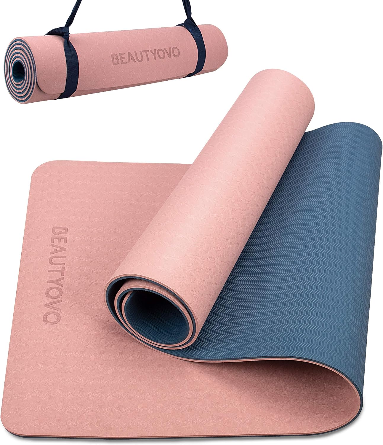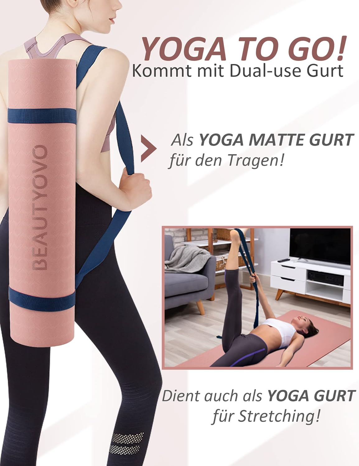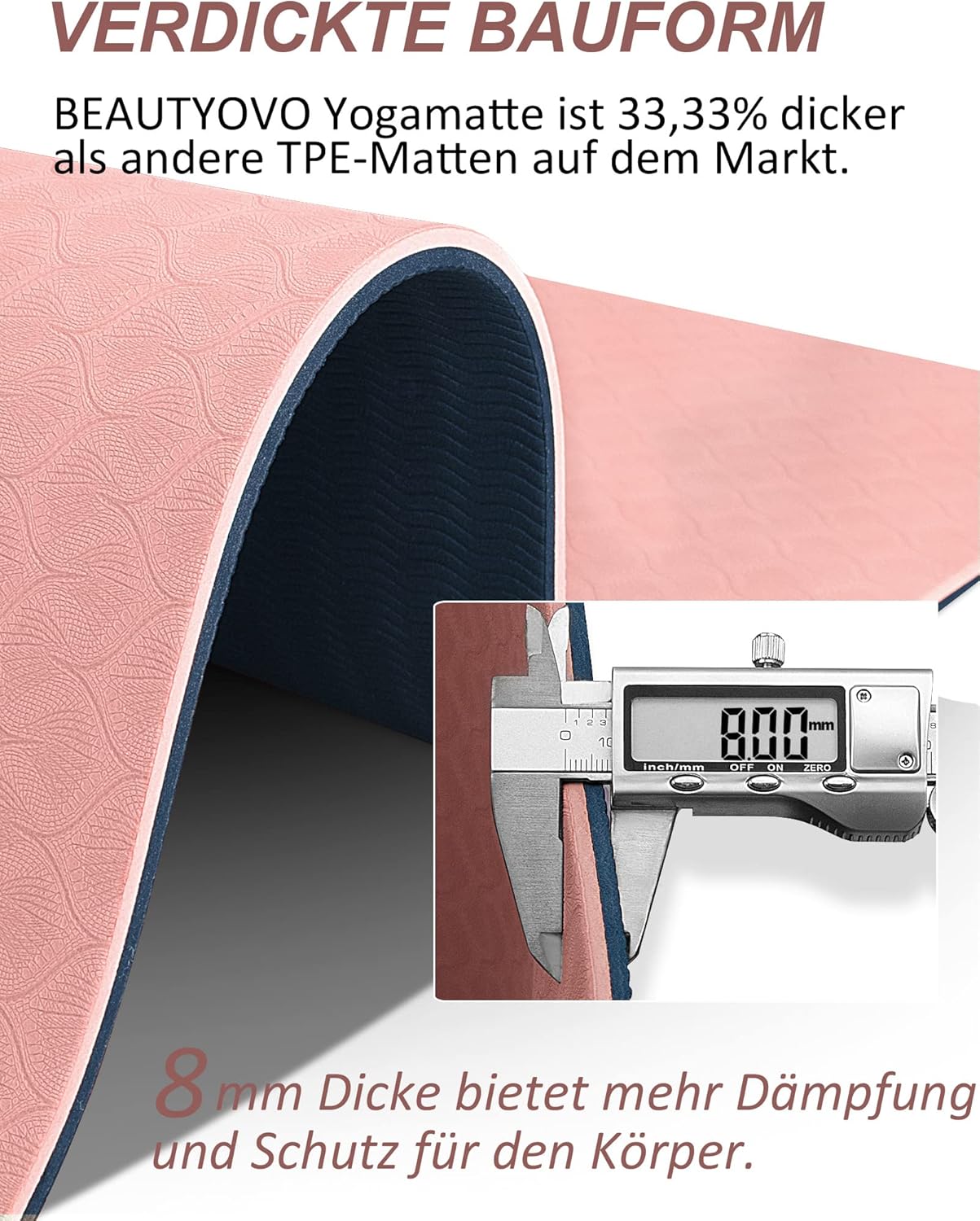 - ▨ TRAGBARE YOGAMATTE MIT TRAGEGURT -- Wird mit einem doppelt verwendbaren Gurt geliefert. Es kann als travel Yoga Mat Tragegurt oder Yoga Dehnungsgurt verwendet werden! BEAUTYOVO TPE Yoga-Matte wiegt nur 2 Pfund, Sie können sie in ein Yogastudio,