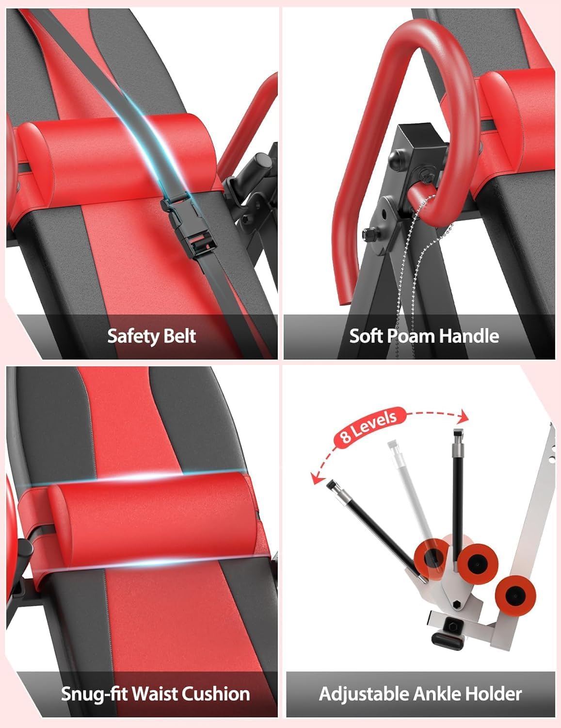 - Komfortable rückenlehne system: Darüber hinaus verfügt diese Inversionstherapietabelle über eine verstellbare Rückenlehne, um zusätzlichen Komfort und Schmerzlinderung zu ermöglichen.