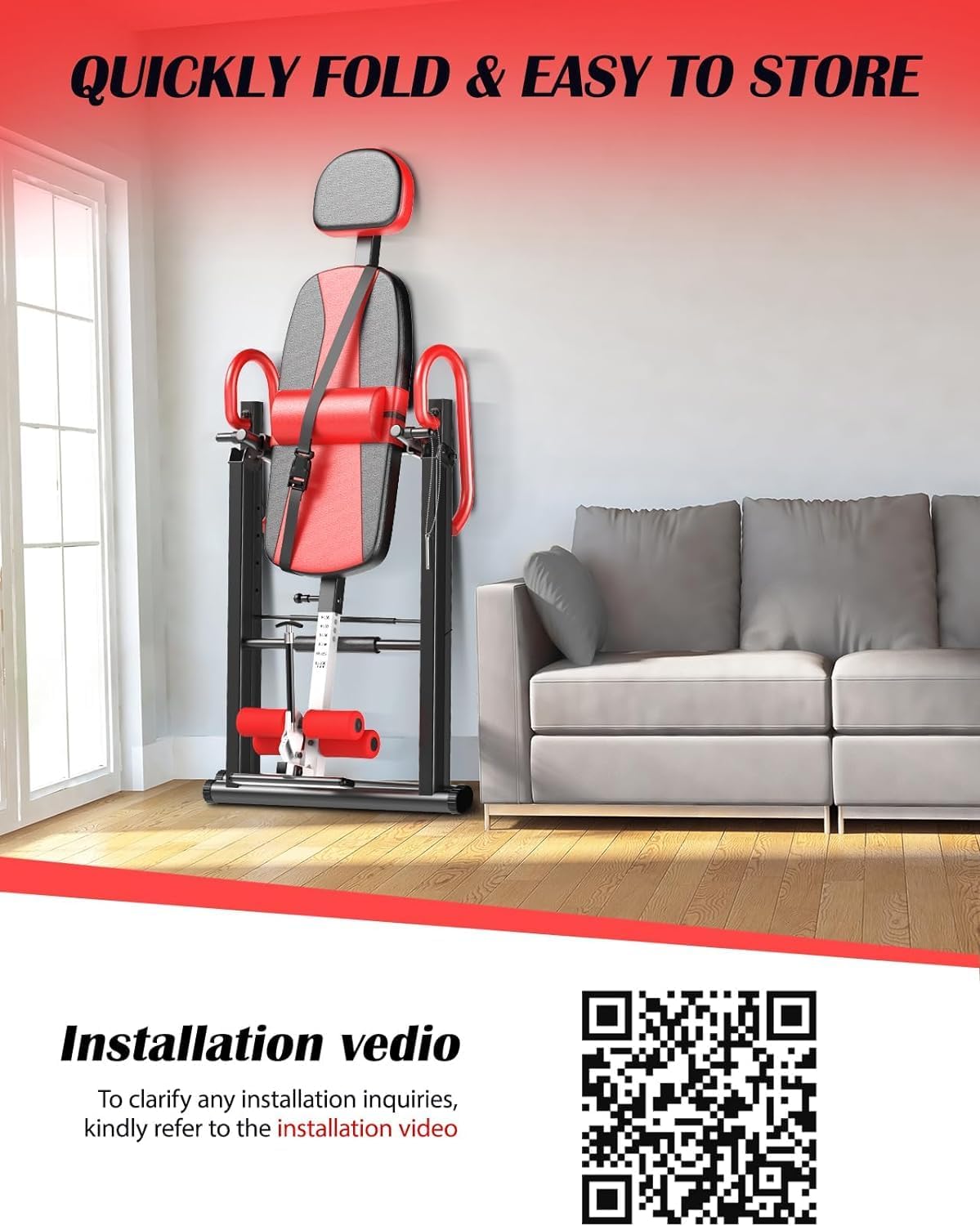 - Faltbares: Unsere Inversionstabelle kann einfach zusammengeklappt und in einem kleinen Raum gelagert werden, dies ist besonders praktisch für Menschen mit begrenztem Platz in ihren Häusern.