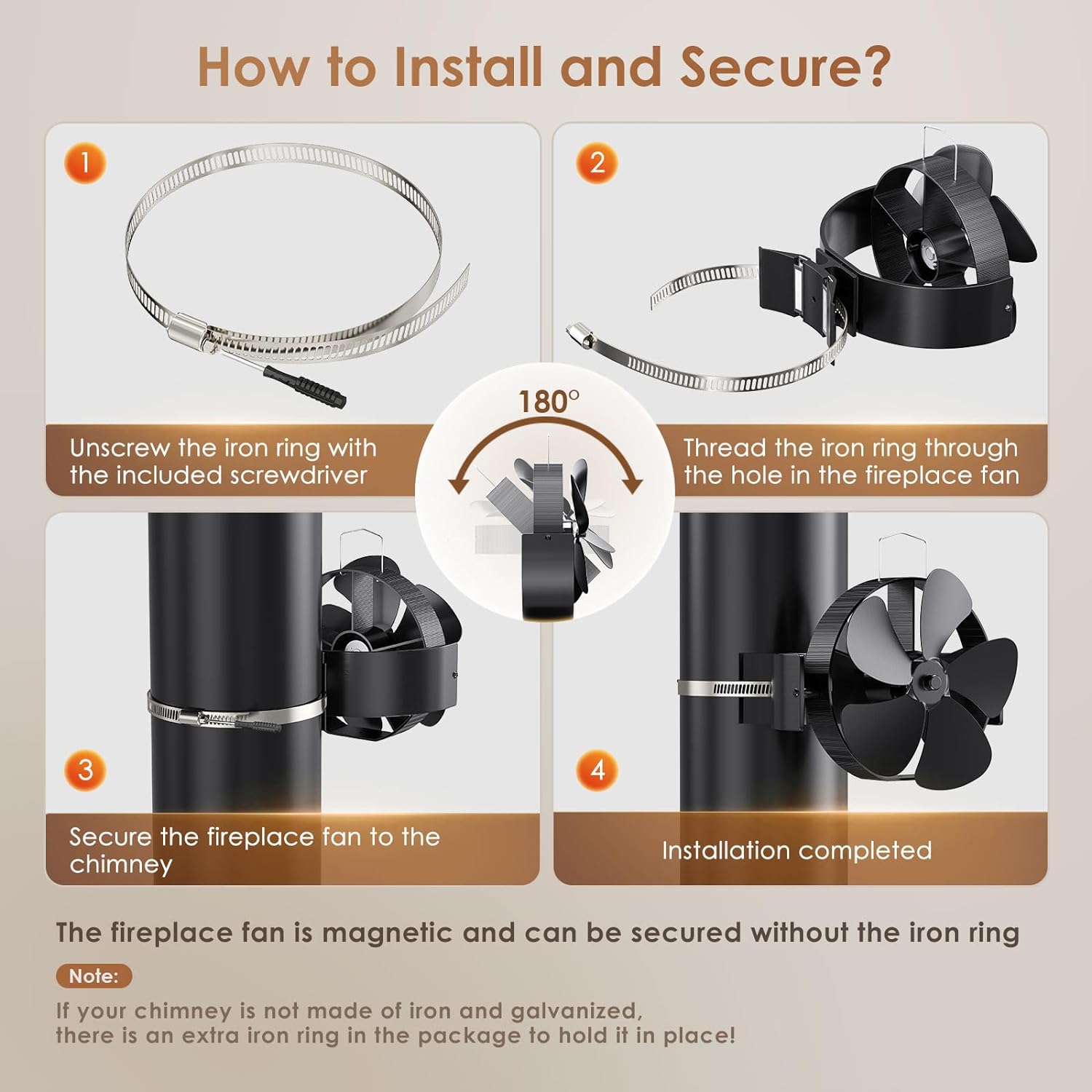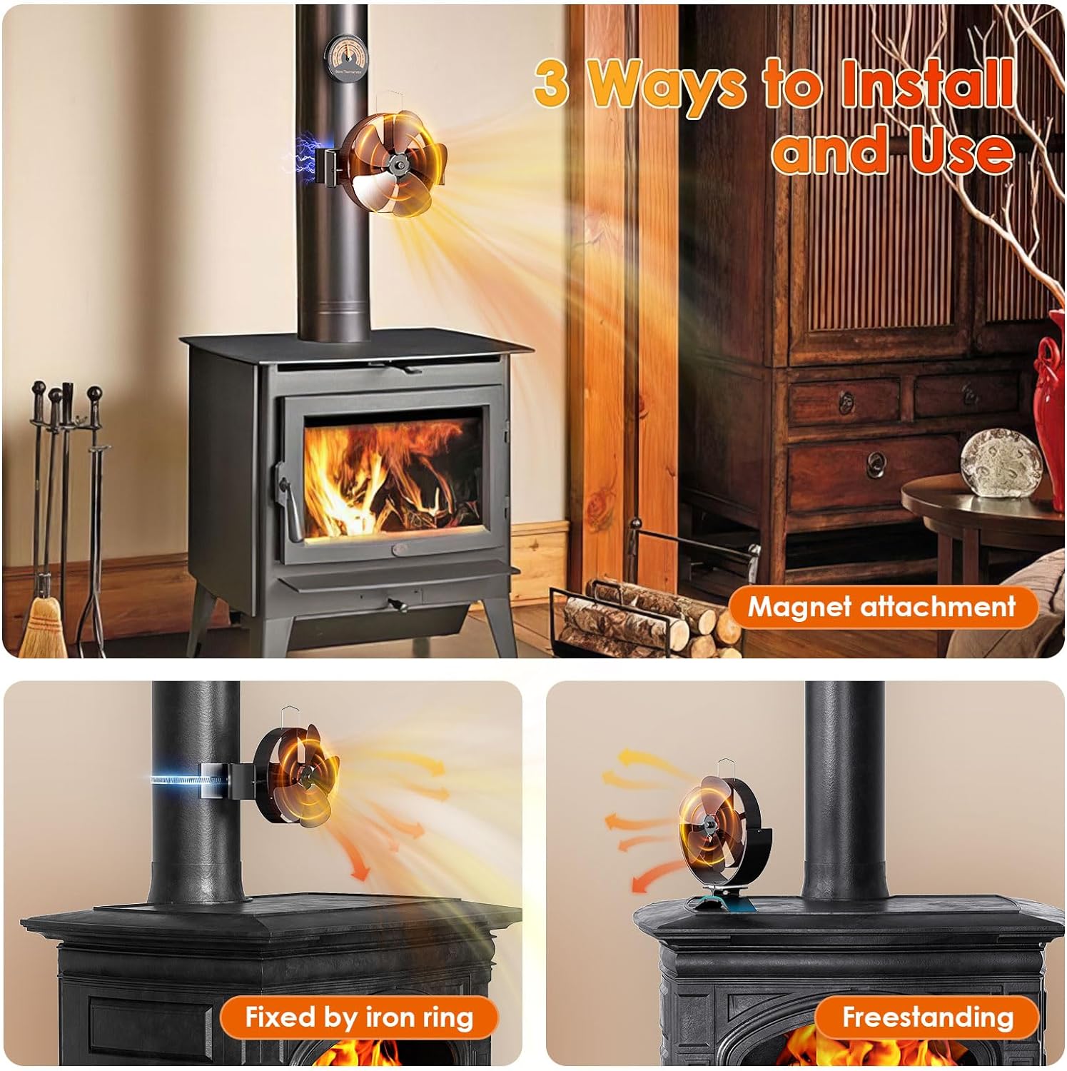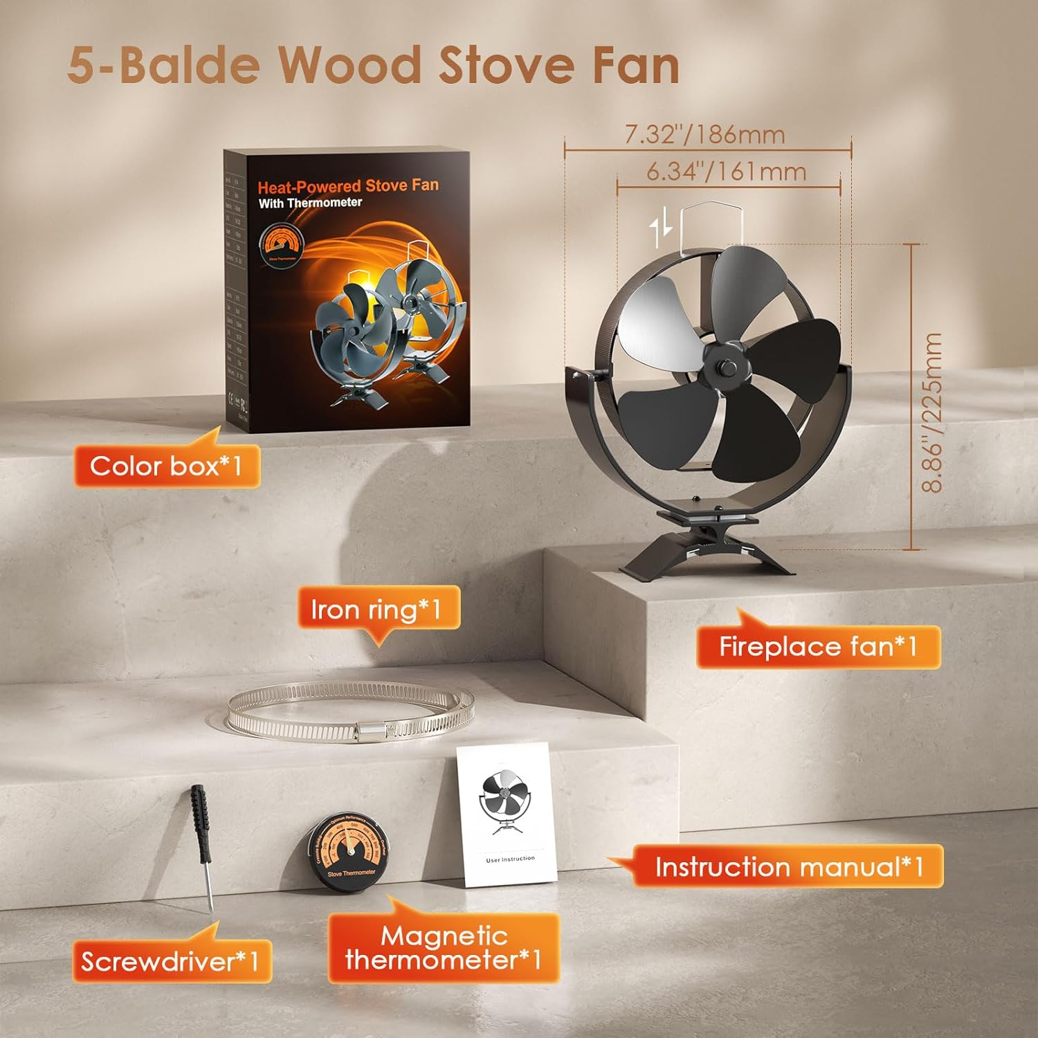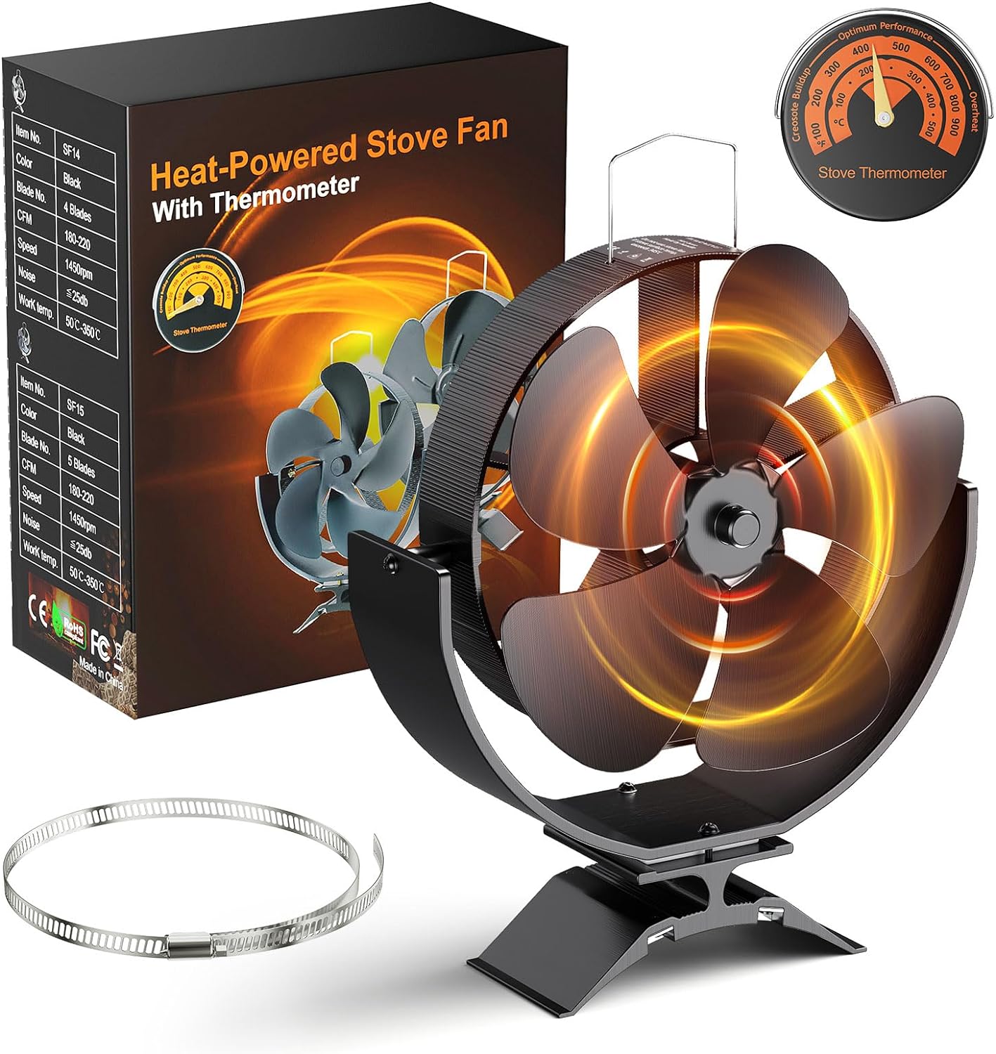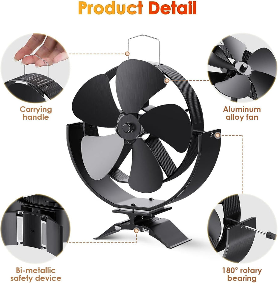 - ENERGIEEINSPARUNG - Aufgrund des Upgrades des Gesamtmaterials des Produkts verwendet der Lüfter für Holzofen mit Wärme hochwertige 5 Blätter, die das Geräusch stärker reduzieren und die Wärmeausgabe des Basislüfters um weitere 20% an der Gleiche