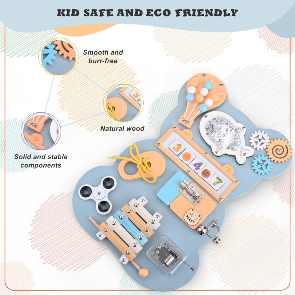 - 【Hölzernes Beschäftigungsbrett-Spielzeug】 Das handgefertigte Beschäftigungsbrett besteht aus hochwertigem Sperrholz. Jede Ecke ist abgerundet und leicht poliert. Es ist sicherer für Kinder zu verwenden.