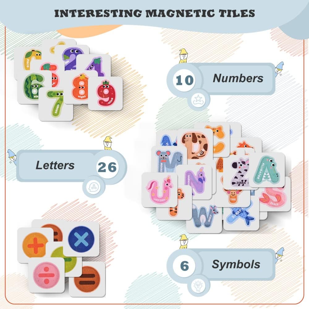 - 【Interessante Magnetkarte】 Das geschäftige Brett enthält Kacheln mit 6 arithmetischen Symbolen, 10 Zahlen und 26 englischen Buchstaben. Kinder können gemeinsam die tierische, digitale Welt erkunden. Eltern können mit Kindern über das