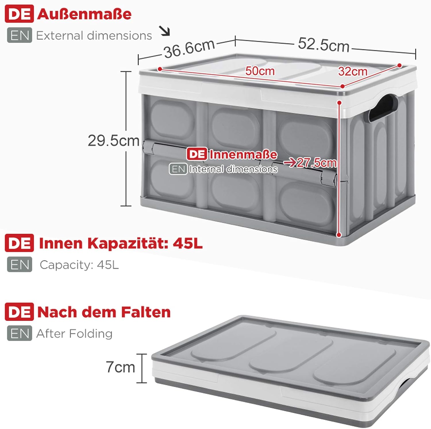 - Zusammenklappbar und platzsparend: In weniger als einer Minute ist das Produkt zusammen auseinandergebaut. Somit eignet es sich hervorragend für den Transport von Gegenständen auf einer Reise, auch wegen seines grossen Fassungsvermögens von 55