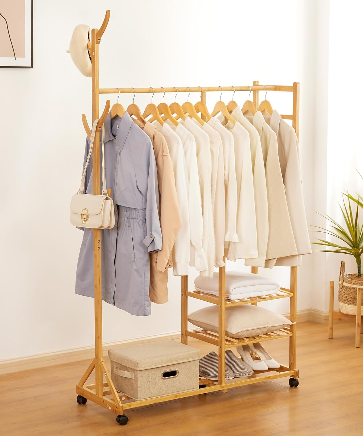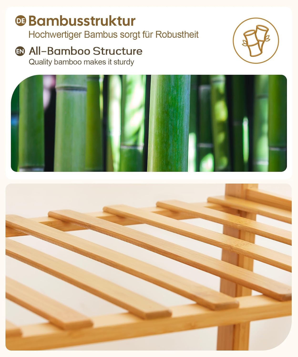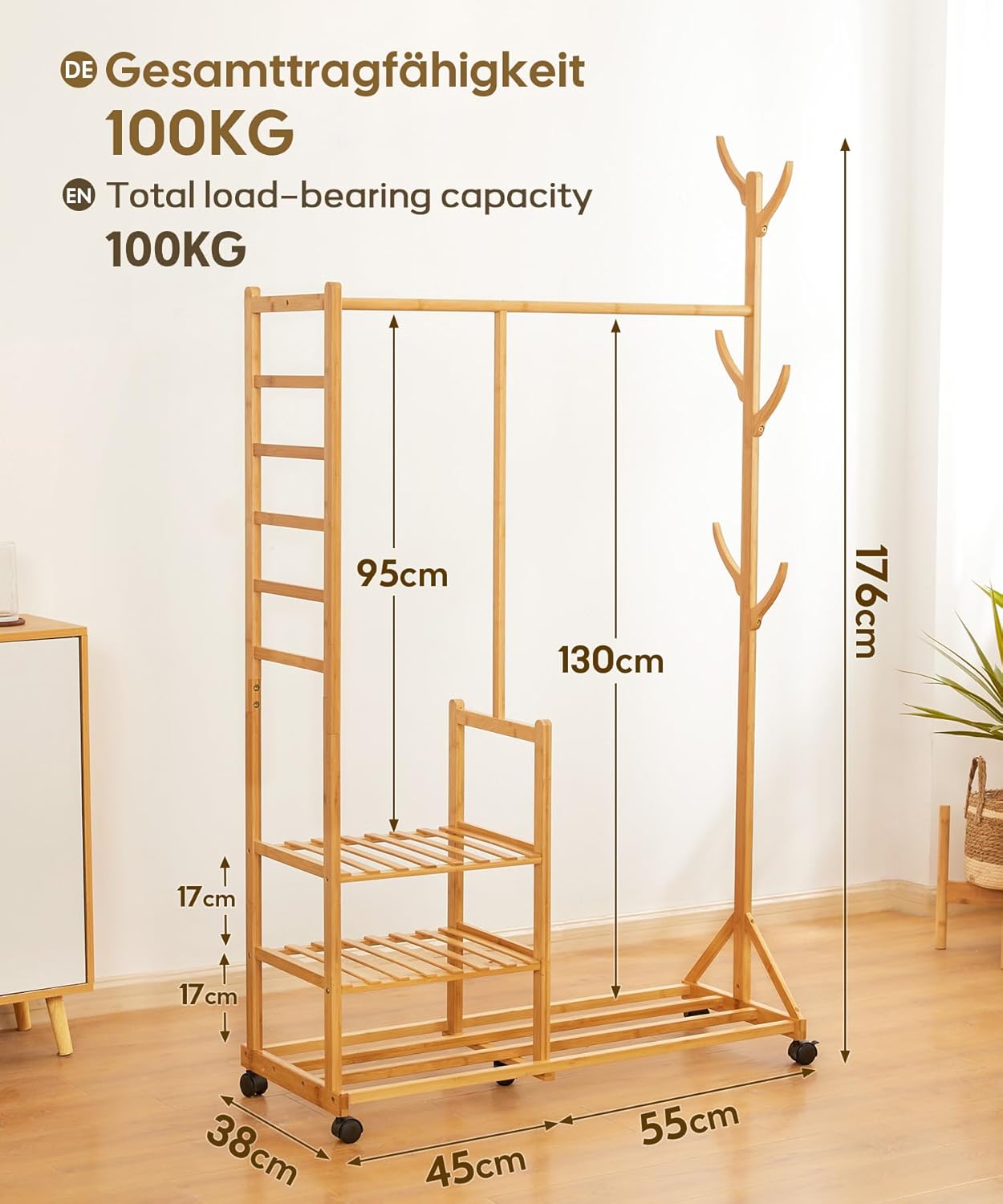 - 【4-in-1 Multifunktionsanwendung】Es handelt sich bei diesem Produkt um einen multifunktionalen Garderobenständer, der gleichzeitig ein Schuhregal, eine Kleiderstange und verschiedene Garderobenhaken in Einem vereint. Es besteht zu 100% aus natürlichem Bambus. Es ist tragfähig. Langlebig und umweltfreundlich. Es besitzt eine glatt polierte Oberfläche und sieht wunderschön aus.