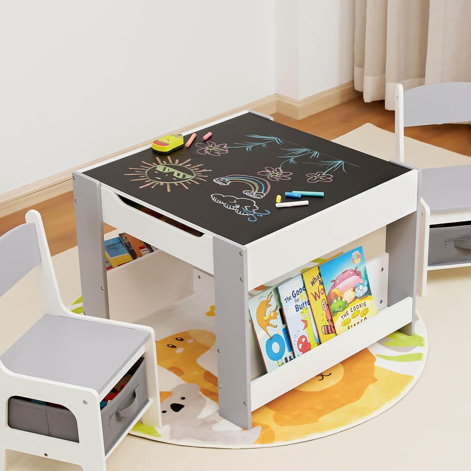 - Multifunktionales 2 in 1 Design: Die Tischplatte hat ein doppelseitiges Design mit verschiedenen Funktionen. Eine Seite ist eine glatte Oberfläche, auf der Kinder schreiben, lesen oder essen können. Wenn man ihn umdreht, wird er zu einer Tafel, auf der