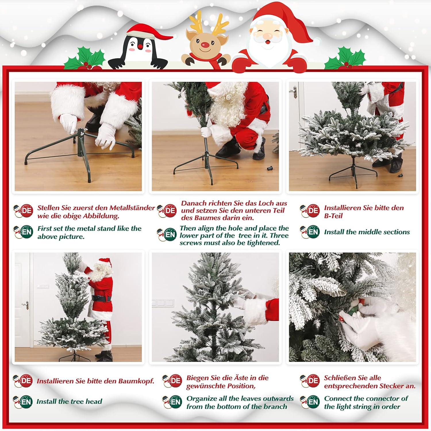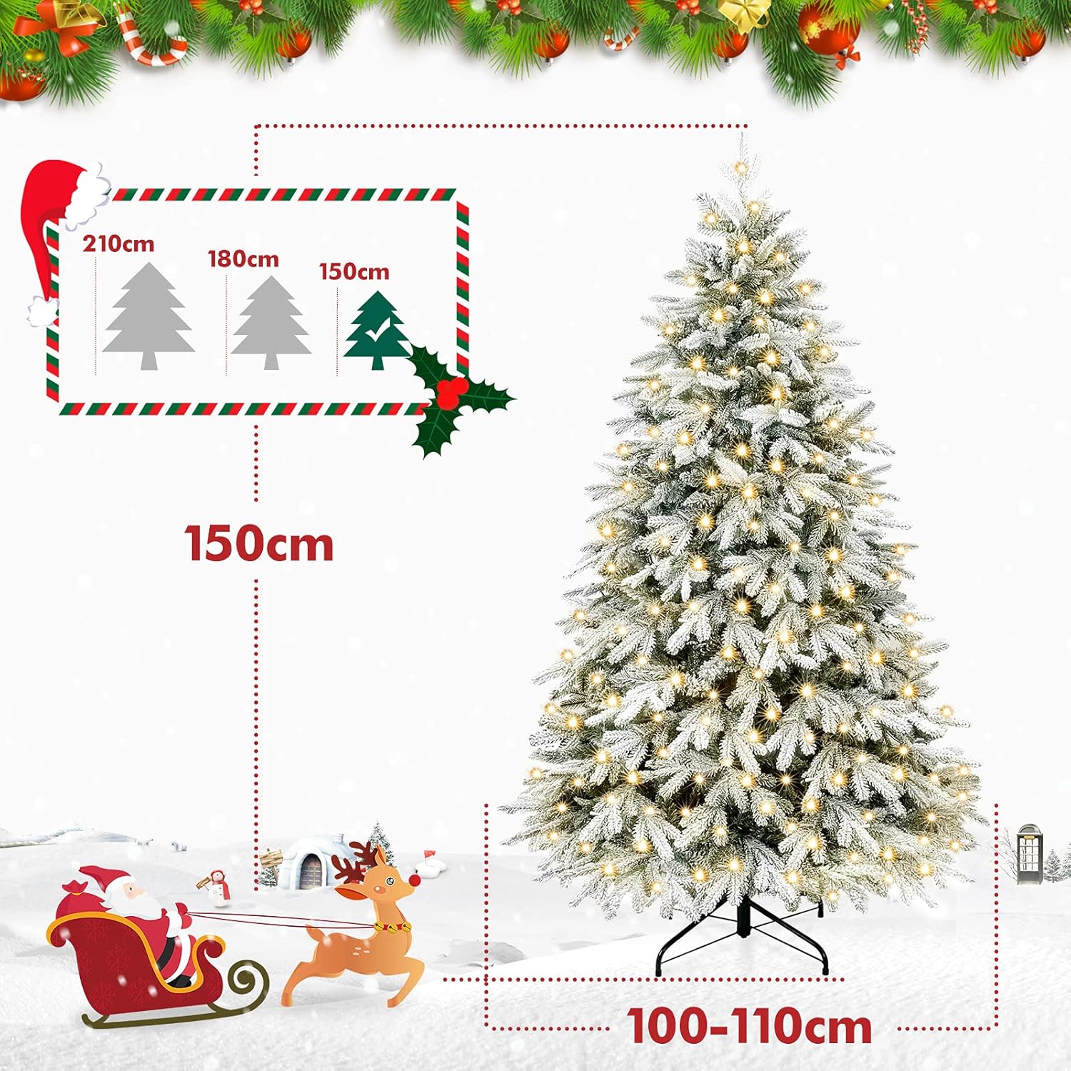 - Schneeweisses und buschiges Aussehen: Dieser elegante 150 cm hohe Weihnachtsbaum besitzt 517 PE- und PVC-Spitzen. Er hat ein schönes und dichtes Erscheinungsbild. PE ist ein innovatives Material für Weihnachtsbäume. Es sieht realistischer