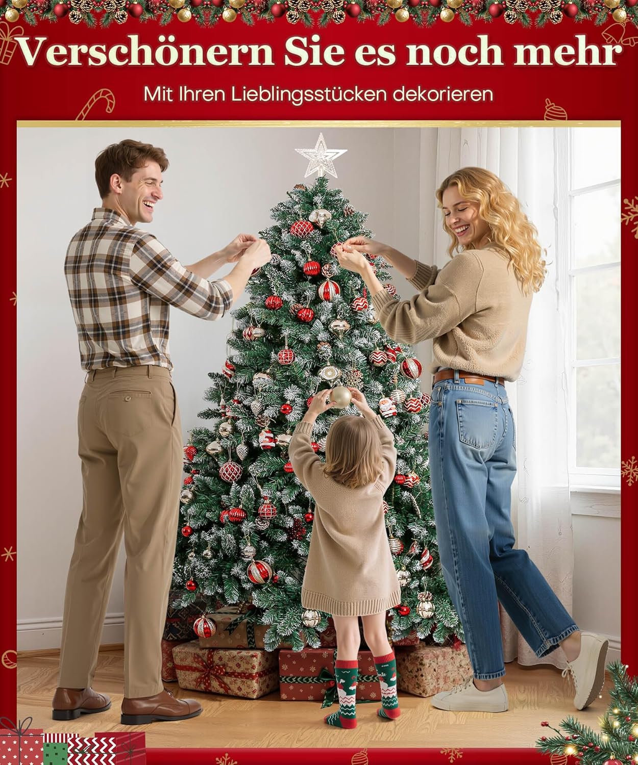 - Sicherheitsnutzung: Wir haben PVC Material gewählt, um sicherzustellen, dass die Äste keine scharfen Spitzen haben, und so einen Weihnachtsbaum geschaffen, der sowohl ästhetisch ansprechend als auch sicher ist. Dadurch können Sie und Ihre Familie
