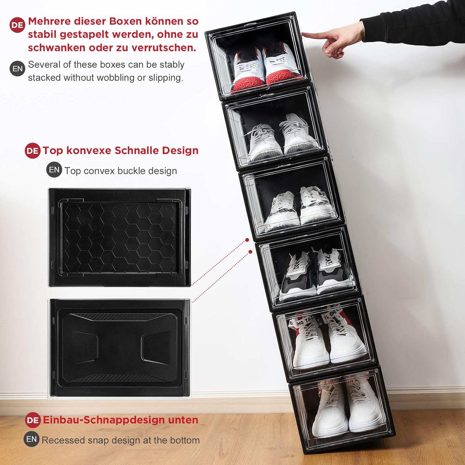 • 【Mit grossem Fassungsvermögen + Hochwertiges Material】Jede Box ist gross genug, Alle Schuhe bis Grösse 48 passen in diese Kartons. Die Boxen bestehen aus neuartigem PP-Material, welches sicher, umweltfreundlich und geruchsneutral ist. Die Wände