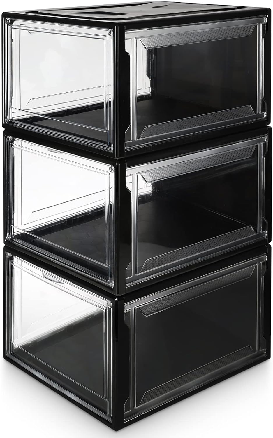 Yorbay Schuhbox, 3er Set, stapelbarer Schuhorganizer, Kunststoffbox mit durchsichtiger Tür, Schuhauf