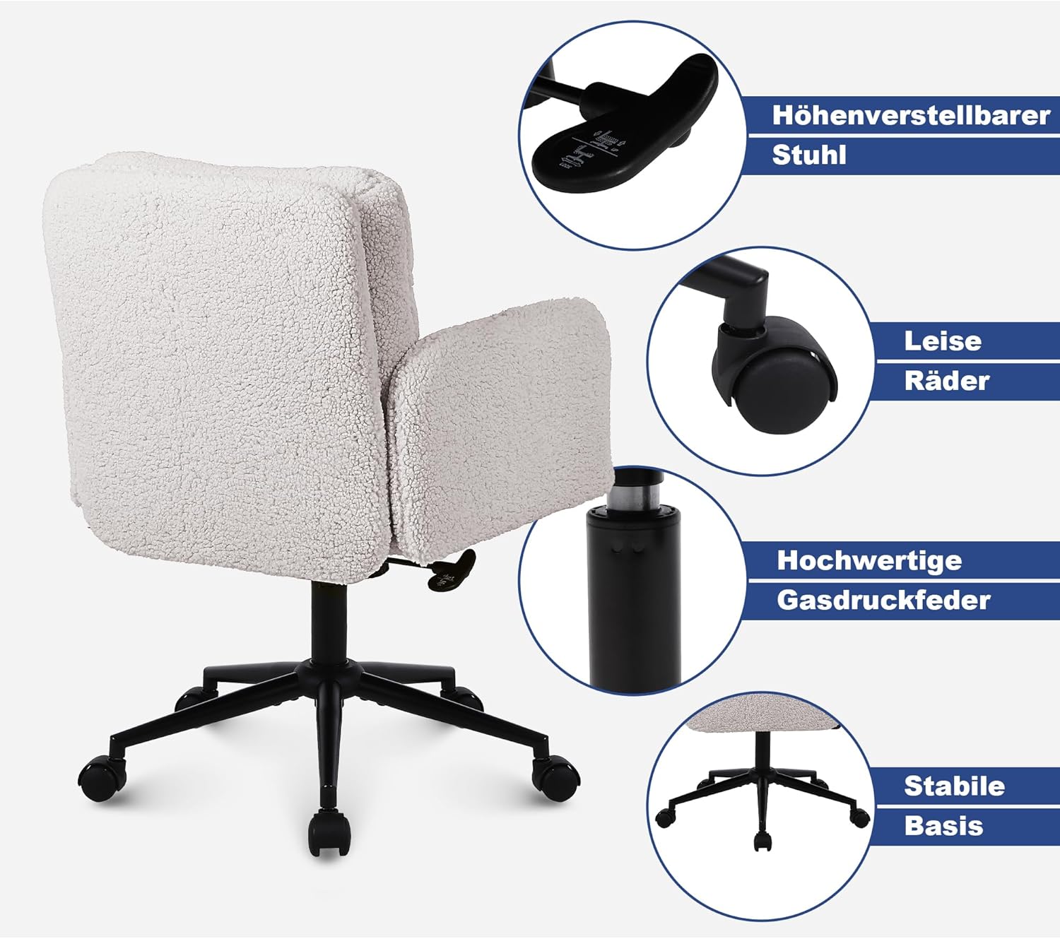 - 🐑Weiches Kaschmir-Material: Unser Schreibtisch Stuhl ist mit Kunstpelz-Kaschmir-Stoff bezogen, die pelzige Berührung reizt die Haut nicht und der 15 cm gepolsterte Sitz sorgt für maximalen Komfort, auch wenn Sie lange darauf sitzen, werden Sie keine
