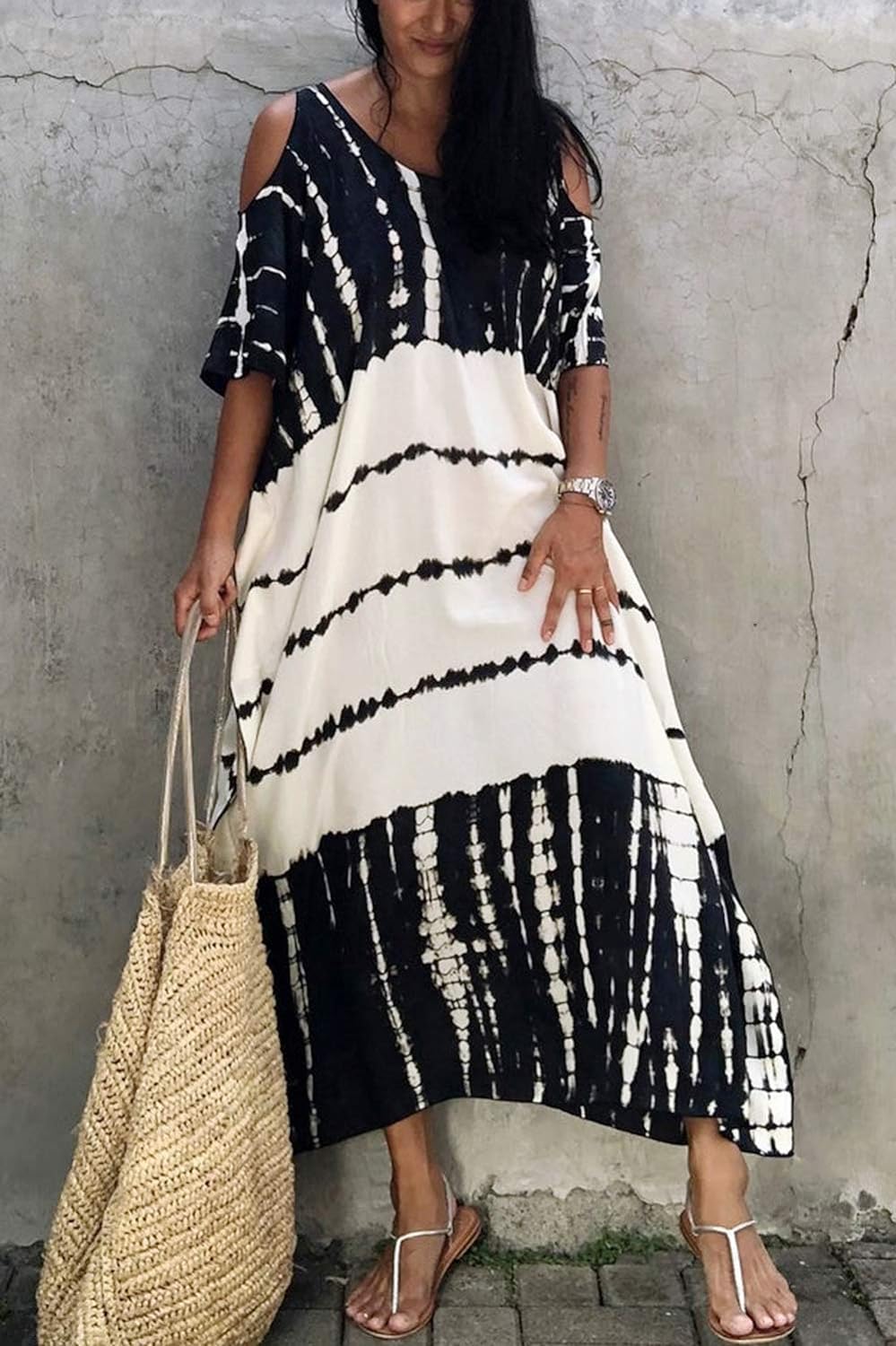 YouKD Sommer schulterfrei Kaftan Bohemian Homewear Beach Bikini Vertuschungen Maxi Robe für Frauen