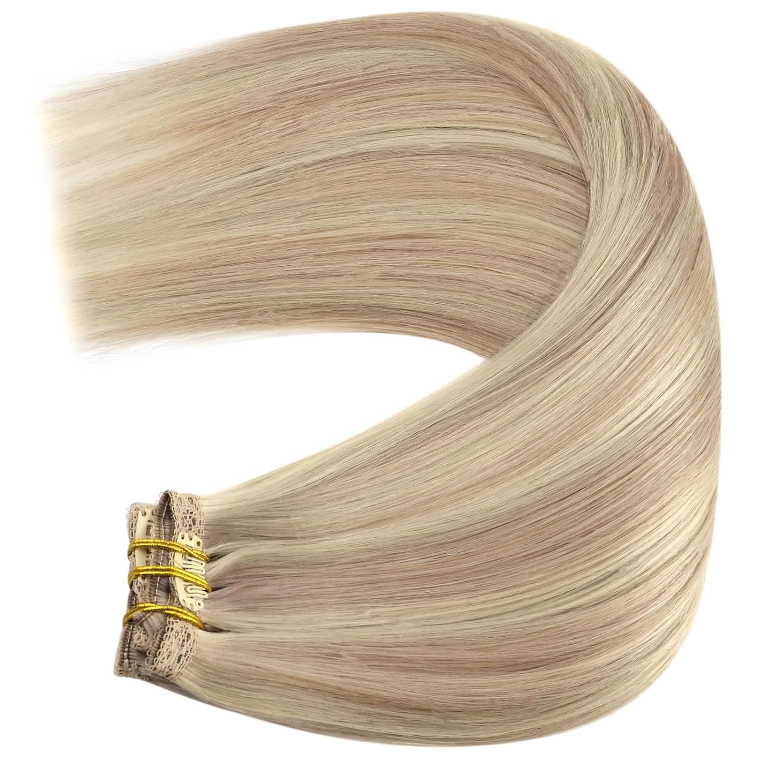 - 【YoungSee ❤ Remy Human Hair】 YoungSee Clip in Extensions Echthaar blond bestehen aus echtem Menschenhaar, seidige Salonqualität, weich wie natürliches Haar. Keine Verfilzungen, kein Haarausfall. Der doppelte Schuss mit gleichmässiger Verteilung