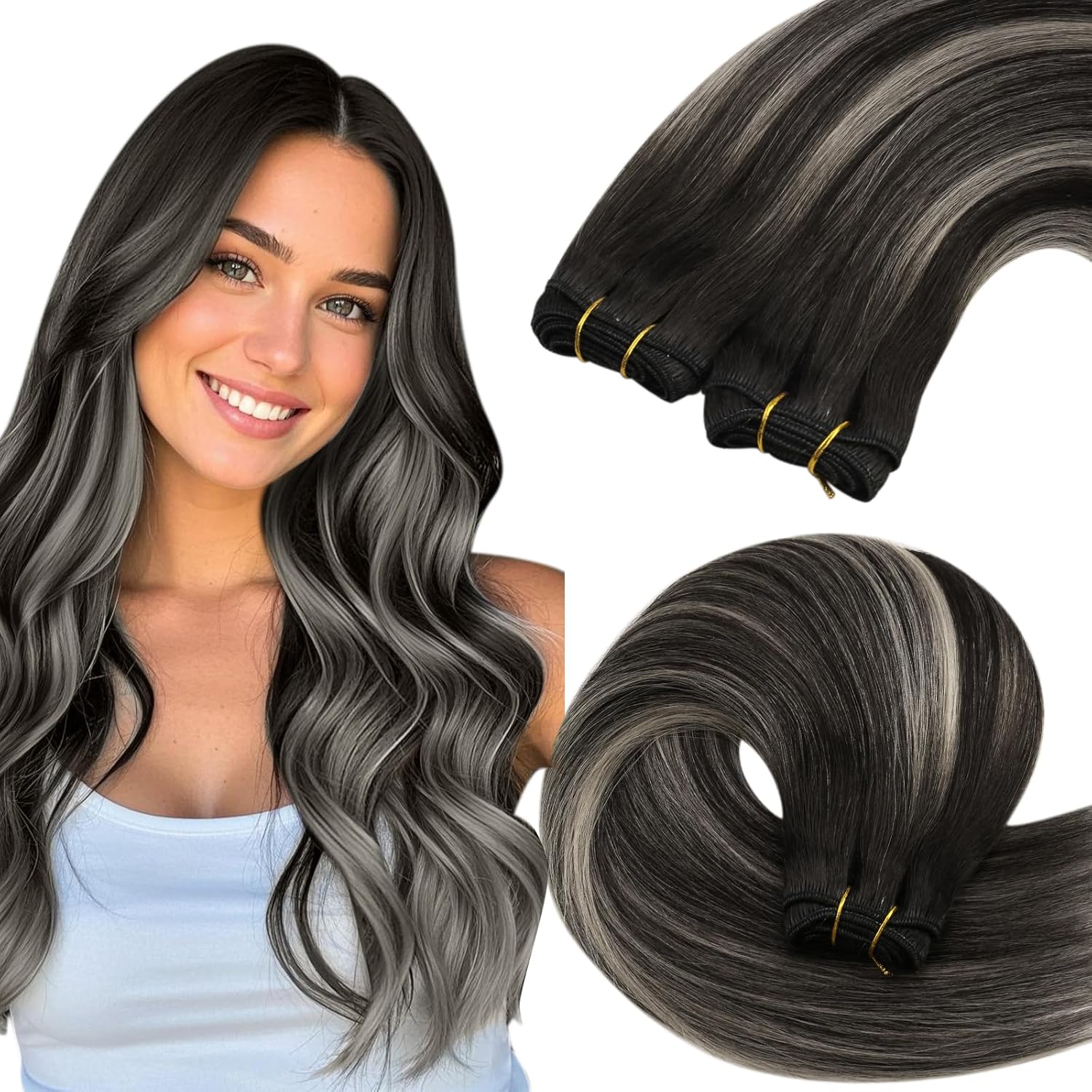 YoungSee Echthaar Tressen Ombre Silber Tressen Echthaar Lang 55cm Haartressen Echthaar Remy Echthaar