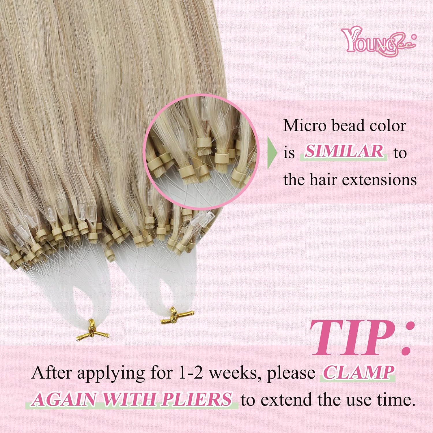 - 【YoungSee ✿ Invisible】 Die Mikroperlen auf unseren Haarverlängerungen mit Mikroschleife sind sehr klein, wodurch das Haar nahtloser und natürlicher aussieht. Keine Hitze zum Tragen erforderlich, kein Klebstoff erforderlich, praktisch harmlos für