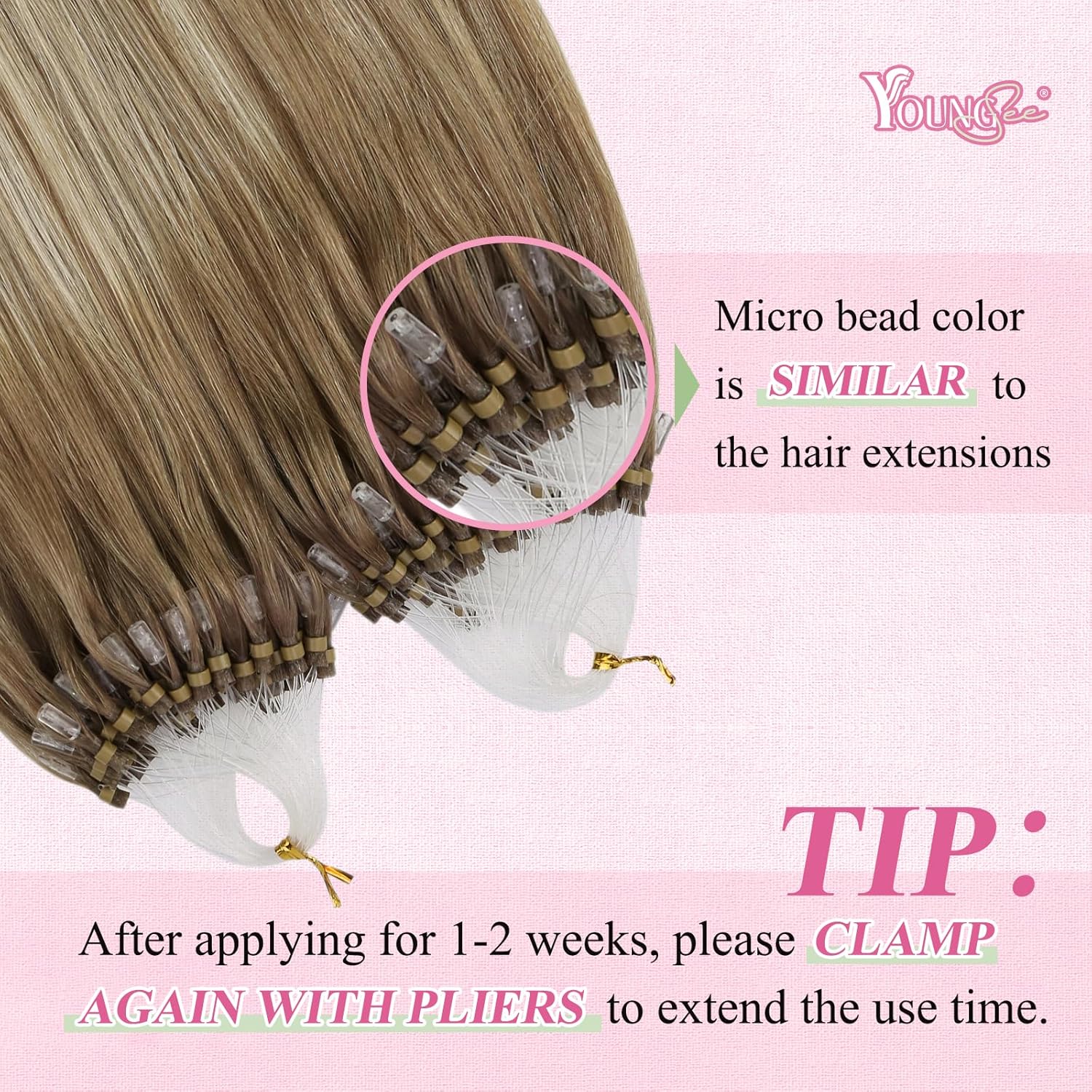 • 【YoungSee ✿ Invisible】 Die Mikroperlen auf unseren Haarverlängerungen mit Mikroschleife sind sehr klein, wodurch das Haar nahtloser und natürlicher aussieht. Keine Hitze zum Tragen erforderlich, kein Klebstoff erforderlich, praktisch harmlos für
